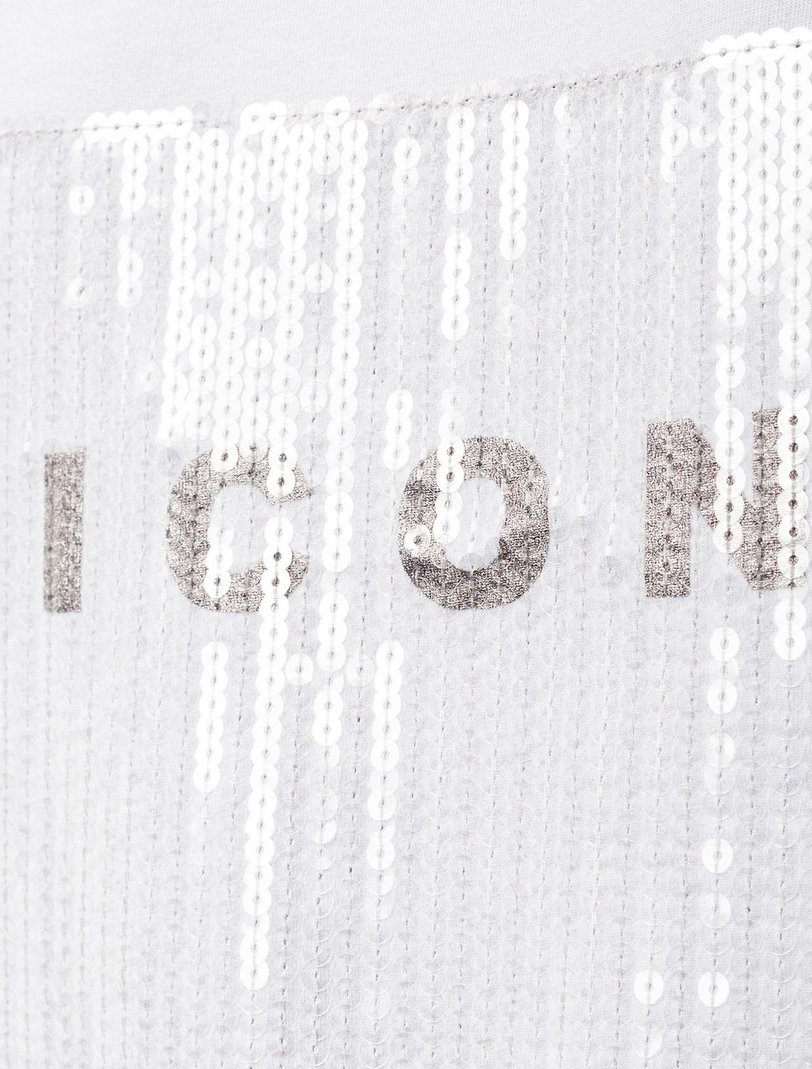 Футболка с цельнокроеным рукавом выполнена из премиального хлопка. Модель украшена принтом расшитым сияющими пайетками. На спинке изделия декоративный разрез без пуговицы. Наличие эластана в составе изделия гарантирует комфорт и формоустойчивость. Внизу металлический логотип бренда. Хорошо впишется как в праздничный образ, так и в повседневный аутфит. 92%Хлопок 8%ПУ