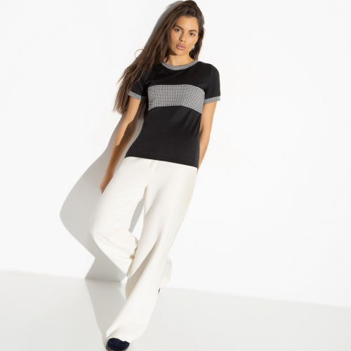 Твоя задача – сделать гедонизм манифестом, превращая каждую секунду в удовольствие. Это легко воплотить в футболке CHARUTTI. Белое полотно станет холстом для ярких событий твоей жизни. Комбинированная футболка приталенного кроя из эластичной ткани. Хорошо смотрится в заправленном виде и навыпуск.
