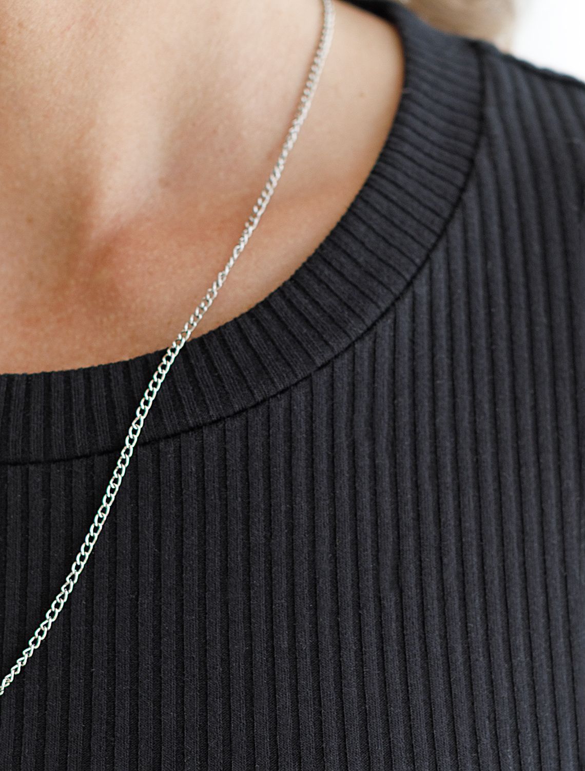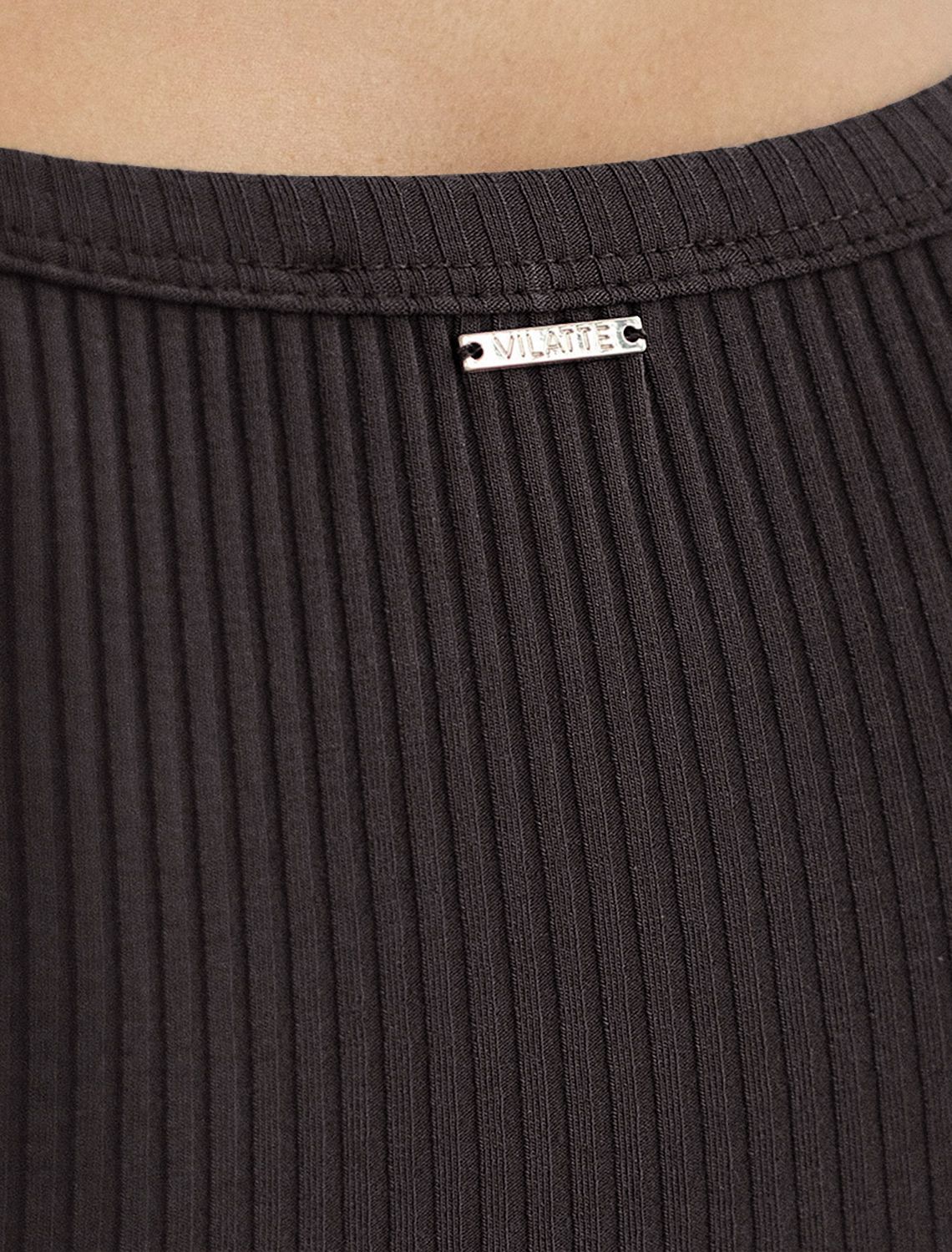 Футболка выполнена из трикотажа в широкий рубчик. Эластичный хлопковый трикотаж сидит по фигуре, не сковывает движений и очень комфортный в носке. Фактура вертикальных полос визуально стройнит и вытягивает силуэт. Базовое изделие хорошо впишется в любой гардероб. Идеально подходит для многослойных образов.