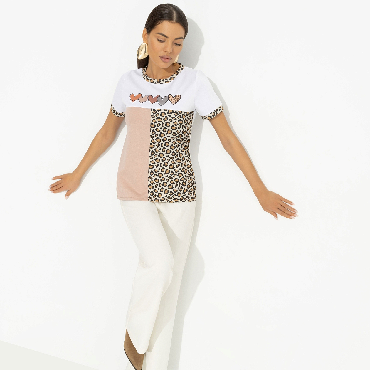 Идеальное утро начинается с кофе в постель, возможности никуда не торопиться и выбрать футболку CHARUTTI. При желании в ней можно провести весь день. Комфорт в максимальной степени. Футболка классического кроя из эластичной ткани. Комбинация нескольких принтов. Отвороты на рукавах прошиты.