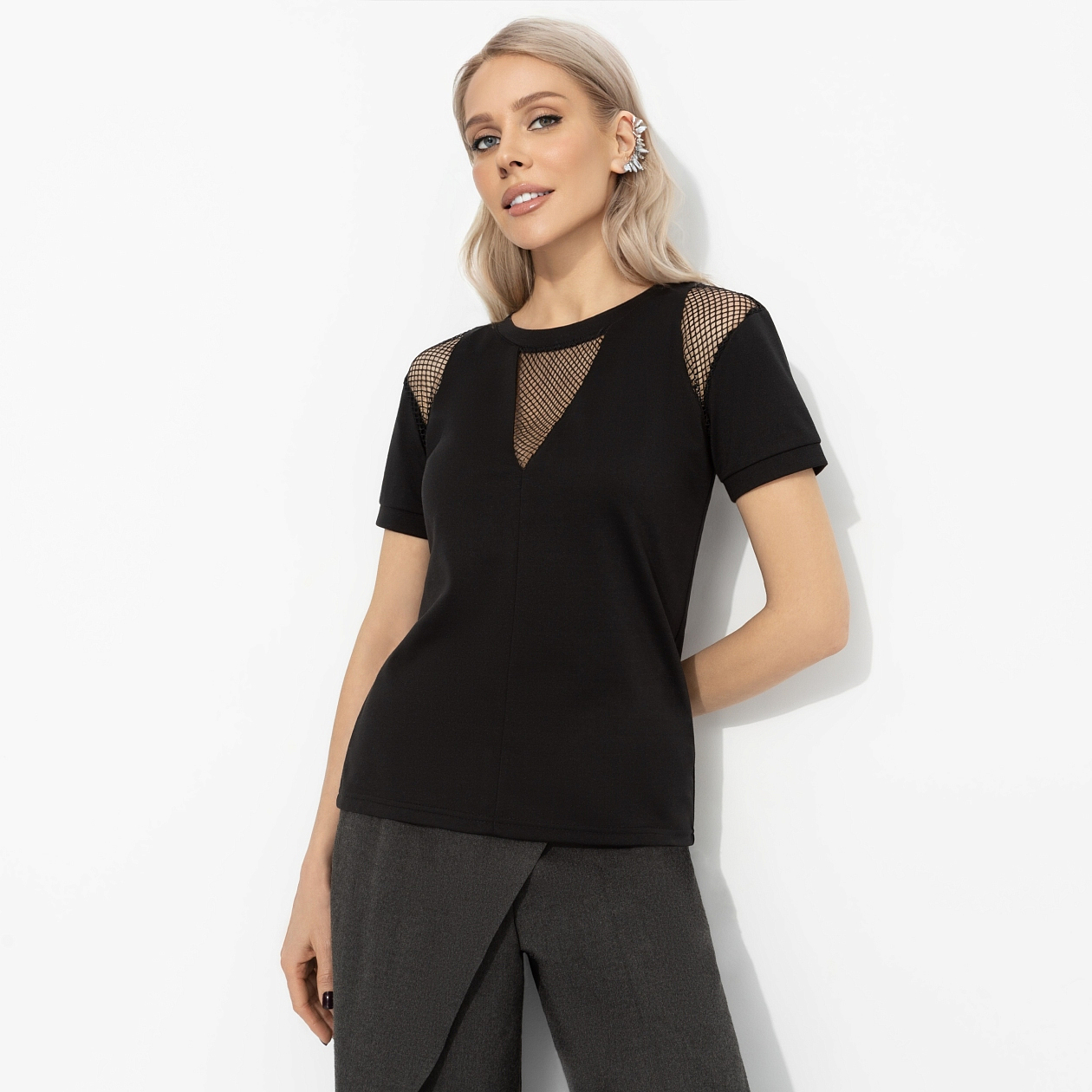 Эта футболка ‒ настоящий импульс. Футболка, в которой страсть становится стилем. Комбинированный дизайн и прозрачная сетка создают эффект притяжения: лёгкая провокация, магнетичный силуэт и энергия, что зажигает чувства. Исключительно для тех, кто ценит индивидуальность, не боится выделяться и зажигать.