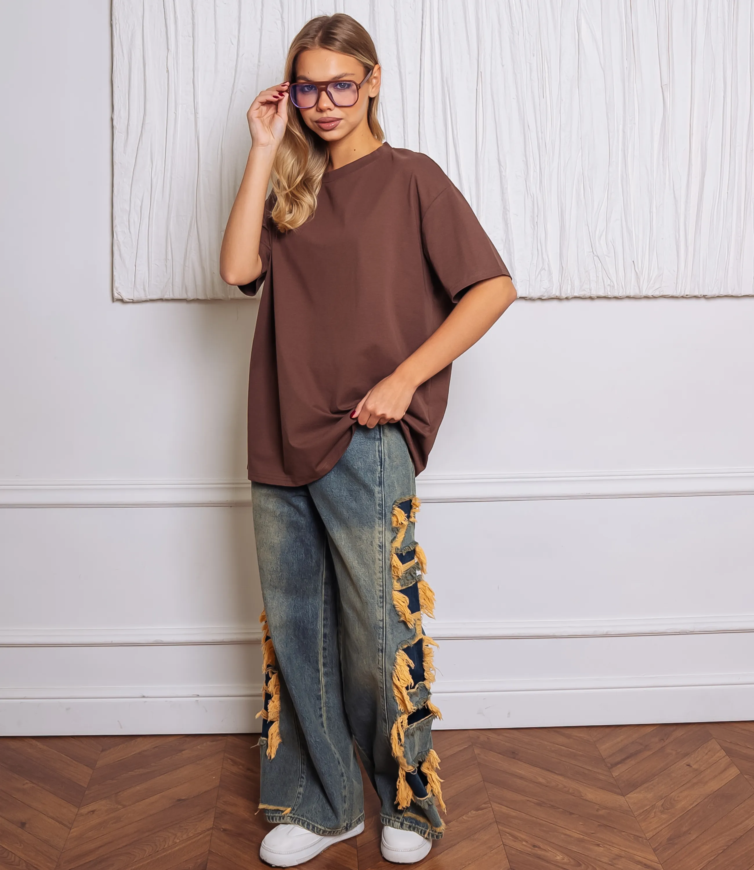 Эта футболка — прекрасный выбор для вашего магазина, предлагая стильный и универсальный дизайн, который станет отличным дополнением к гардеробу ваших клиентов. Свободный стиль, который обеспечивает комфорт и свободу движений. Широкие рукава и удлиненная форма делают футболку универсальной для различных нарядов. Классический круглый вырез горловины, который подходит практически всем типам фигур. Выполненная из 23% хлопка, 27% полиэстера, футболка обеспечивает отличное качество и приятные тактильные ощущения. Независимо от сезона, она станет любимым элементом в гардеробе ваших клиентов. На странице сайта доступна таблица размеров, что позволит вашим покупателям легко найти подходящий вариант. Установленная цена делает эту футболку доступной для широкой аудитории, что обеспечит вам высокий уровень продаж. Рост модели: 168, параметры: 89-63-90.
