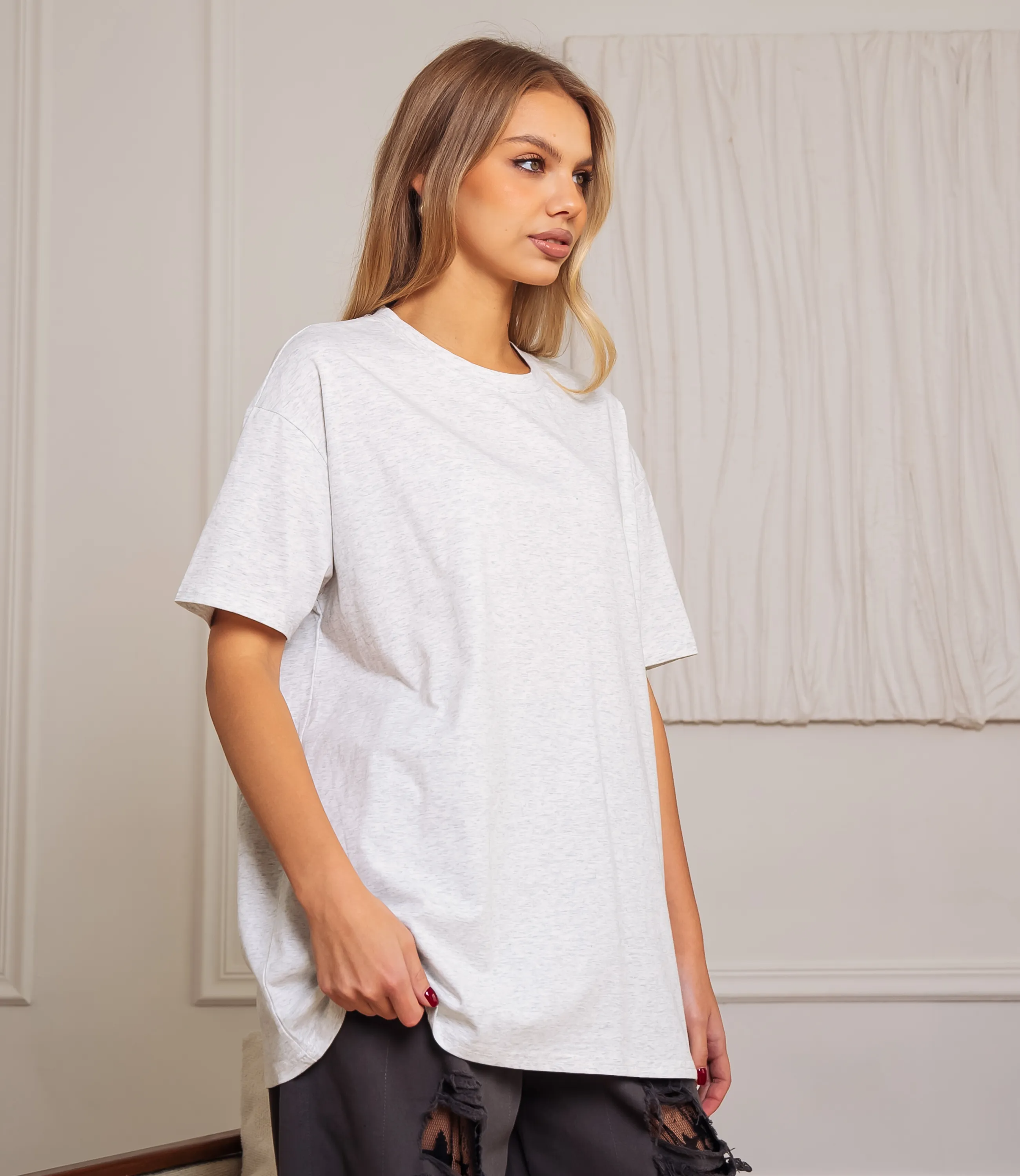 Эта футболка — прекрасный выбор для вашего магазина, предлагая стильный и универсальный дизайн, который станет отличным дополнением к гардеробу ваших клиентов. Свободный стиль, который обеспечивает комфорт и свободу движений. Широкие рукава и удлиненная форма делают футболку универсальной для различных нарядов. Классический круглый вырез горловины, который подходит практически всем типам фигур. Выполненная из 23% хлопка, 27% полиэстера, футболка обеспечивает отличное качество и приятные тактильные ощущения. Независимо от сезона, она станет любимым элементом в гардеробе ваших клиентов. На странице сайта доступна таблица размеров, что позволит вашим покупателям легко найти подходящий вариант. Установленная цена делает эту футболку доступной для широкой аудитории, что обеспечит вам высокий уровень продаж. Рост модели: 168, параметры: 89-63-90.