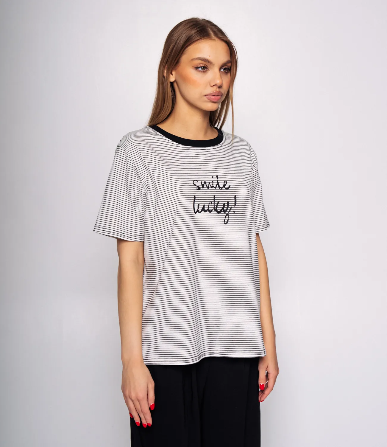 Футболка прямого кроя с горизонтальной полоской, надписью и окантовкой на рукаве - это модель, которая сочетает в себе классический стиль и интересные детали. Прямой крой футболки обеспечивает свободу движений и комфорт при носке. Она подчеркивает линии фигуры, сохраняя при этом расслабленный вид. Горизонтальная полоска на футболке создает стильный и элегантный эффект. Окантовка на рукаве придаёт футболке дополнительный акцент и завершенный вид. Такую футболку можно сочетать с различными нижней одеждой, от джинсов до юбок или шорт. Вы можете создавать разнообразные образы, дополняя футболку аксессуарами и обувью. Рост 168 см, 89-63-90.