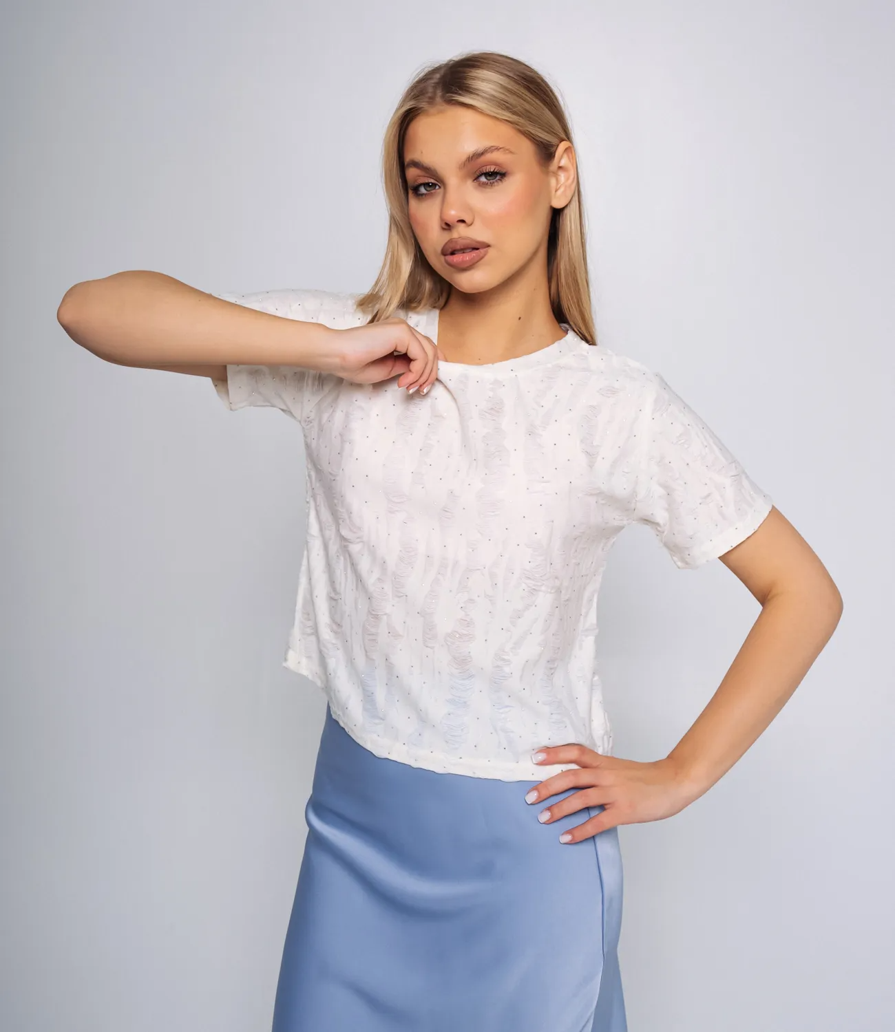 Футболка – это часть гардероба, которая подчеркивает женственность каждой женщины. Данная модель футболки с коротким рукавом отлично подойдет для летнего сезона. Ее выбирают женщины, которые ценят сочетание качества и цены. Силуэт подчеркивает красоту фигуры. Производитель умеет находить эффектные и модные решения. Для изготовления использована ткань 80% хлопок, 20% полиэстер, которая характеризуется отличным качеством. Даже после многих стирок футболка не потеряет изначальной привлекательности. Вы обязательно будете ее носить с радостью. Обращайте внимание на декоративные разрезы и стразы, которые добавляют изюминку в ваш образ. Цвет футболки также соответствует картинке на сайте. Чтобы быть уверенными в размере, обратитесь к таблице на сайте. Установленная нами цена является приемлемой. Не откажите себе в удовольствии быть стильной и неповторимой! Параметры модели: рост 168, 89-63-90.