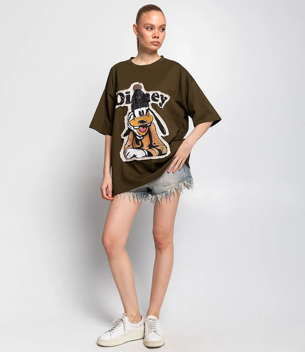 Футболка – это незаменимый элемент гардероба, который подчеркивает индивидуальность и уверенность каждой женщины. Благодаря свободному крою с короткими рукавами, эта футболка создает комфортный и расслабленный стиль, идеальный для повседневной носки. Уникальность данной модели заключается в крупном принте с изображением персонажа мультфильма, что придает ей игривость и молодежный вид. Это именно то, что необходимо для создания яркого и стильного образа, который привлечет внимание и позволит вашим клиентам выделиться из толпы. Изготовленная из 100% хлопка, эта футболка обеспечивает невероятное удобство и легкость, позволяя носить её в жаркие дни без ограничений. Размер и форма линии силуэта позволяют легко сочетать её с различными брюками или юбками, создавая стильные образы на каждый день, будь то прогулка по парку или встреча с друзьями. Кроме того, даже после многократных стирок, эта футболка сохранит свою яркость и форму, что делает её отличным выбором для активного образа жизни. Обратите внимание на насыщенные цвета — они полностью соответствуют фотографиям на нашем сайте, что дает вашим покупателям уверенность в правильном выборе. Мы также предоставили таблицу размеров на нашем сайте, чтобы каждая покупательница могла легко подобрать свой идеальный вариант. Предложенная нами цена является доступной и привлекательной для оптовых покупателей, делая эту футболку отличным дополнением к вашему ассортименту. Подарите своим клиентам возможность носить стильные и комфортные вещи, которые подчеркнут их уникальность! Рост модели: 173, параметры: 84-58-89.