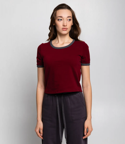 Эта футболка — прекрасный выбор для вашего магазина, предлагая стильный и универсальный дизайн, который станет отличным дополнением к гардеробу ваших клиентов. Футболка имеет укороченный крой. круглый вырез придаёт элемент классики и подходит для разных типов фигур, а цветная отделка добавляет яркости. Короткие рукава обеспечивают легкость и свободу движений, делая футболку подходящей для весенне-летнего сезона или как базовый слой в более холодное время. Выполненная из ткани с 95% хлопка и 5% полиэстер, футболка обеспечивает отличное качество и приятные тактильные ощущения. Независимо от сезона, она станет любимым элементом в гардеробе ваших клиентов. На странице сайта доступна таблица размеров, что позволит вашим покупателям легко найти подходящий вариант. Установленная цена делает эту футболку доступной для широкой аудитории, что обеспечит вам высокий уровень продаж. Рост 168, 85-63-92