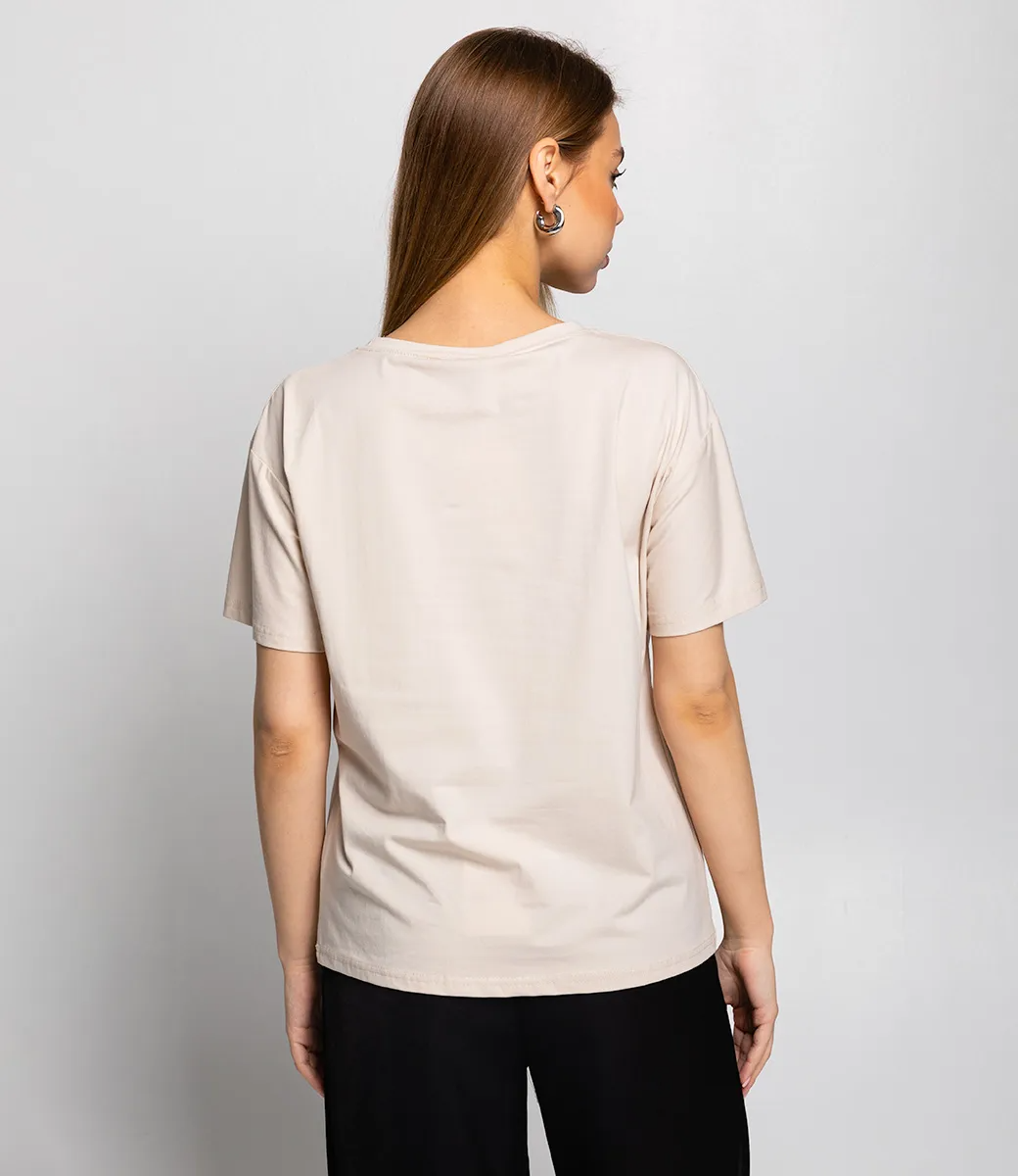 Эта футболка — прекрасный выбор для вашего магазина, предлагая стильный и универсальный дизайн, который станет отличным дополнением к гардеробу ваших клиентов. Свободный силуэт с короткими рукавами, создающий расслабленный и непринужденный стиль. Классический воротник отлично подходит для создания многослойных образов. Выполненная из ткани с 95% хлопка и 5% полиэстера, футболка обеспечивает отличное качество и приятные тактильные ощущения. Независимо от сезона, она станет любимым элементом в гардеробе ваших клиентов. На странице сайта доступна таблица размеров, что позволит вашим покупателям легко найти подходящий вариант. Установленная цена делает эту футболку доступной для широкой аудитории, что обеспечит вам высокий уровень продаж. Рост 168 см, 89-63-90.