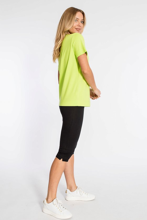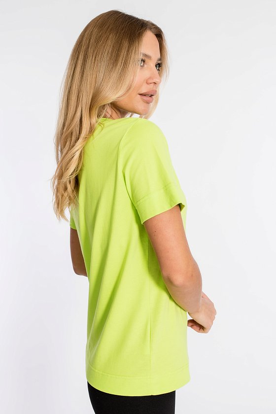Футболка из кулирки, 100% хлопок, с коротким втачным рукавом и притачной планкой по горловине. Спереди вышивка.
