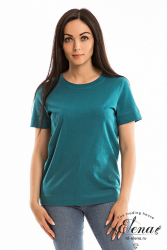 Футболка из однотонной кулирки с коротким втачным рукавом. Спереди нанесён принт.