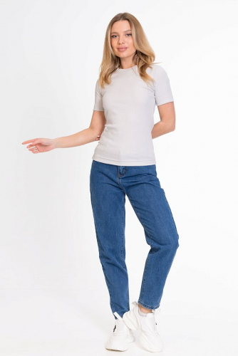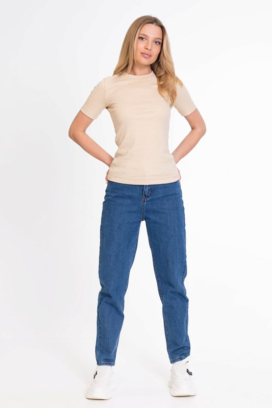 Женская футболка, облегающего силуэта из кашкорсе с люрексом. Круглый вырез горловины, короткий облегающий рукав.
