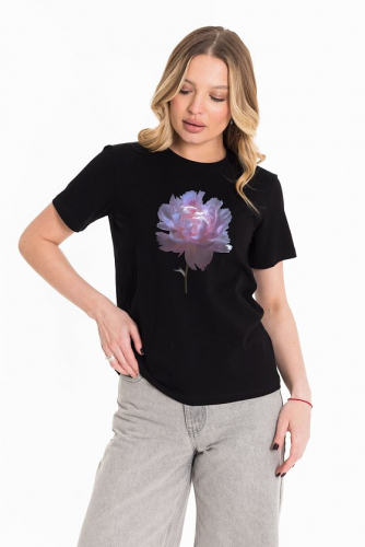 Женская футболка с принтом спереди изготовлена из хлопкового полотна с добавлением лайкры. Футболка с коротким втачным рукавом и круглым вырезом горловины, что придает ей классический стильный вид. Такая модель футболки отлично сочетается с джинсами, брюками или юбкой. Изготовленная из натуральной ткани, футболка обеспечит комфорт в течение всего дня.