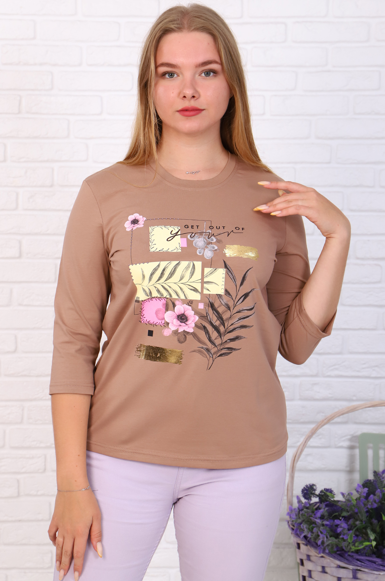 Нежный и стильный лонгслив - это футболка с длинным рукавом, которая удобна на прохладную погоду. Модель прямого кроя, на полочке принт, рукав 3/4.