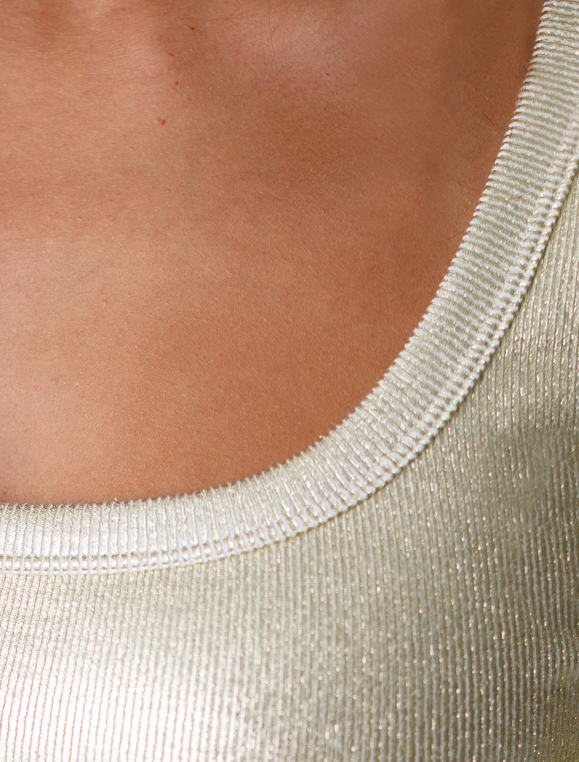 Футболка облегающая из хлопка в рубчик с U вырезом и матовым покрытием металлик