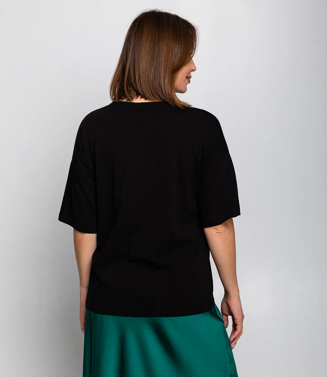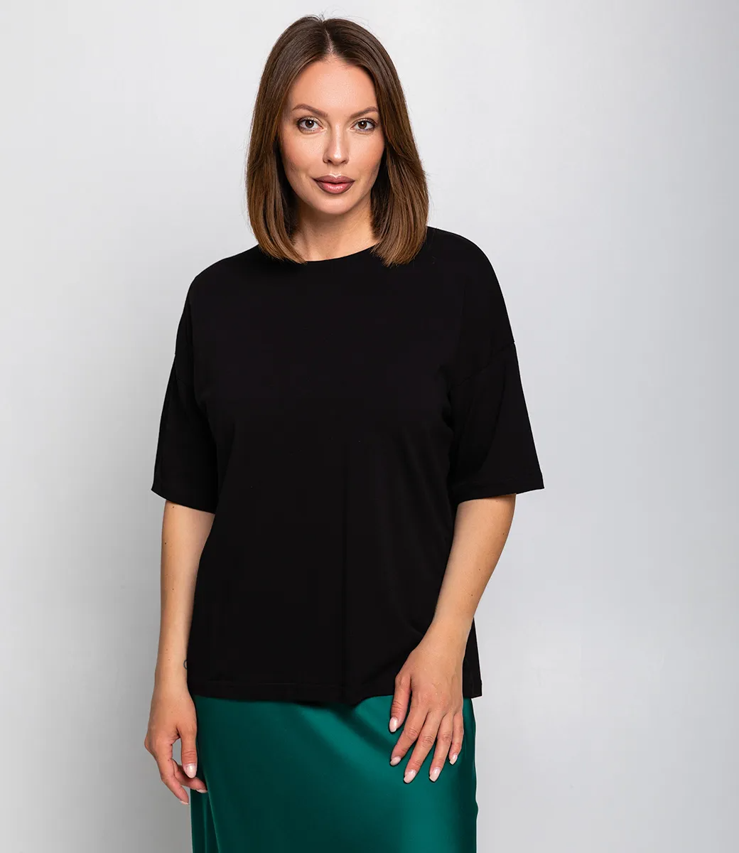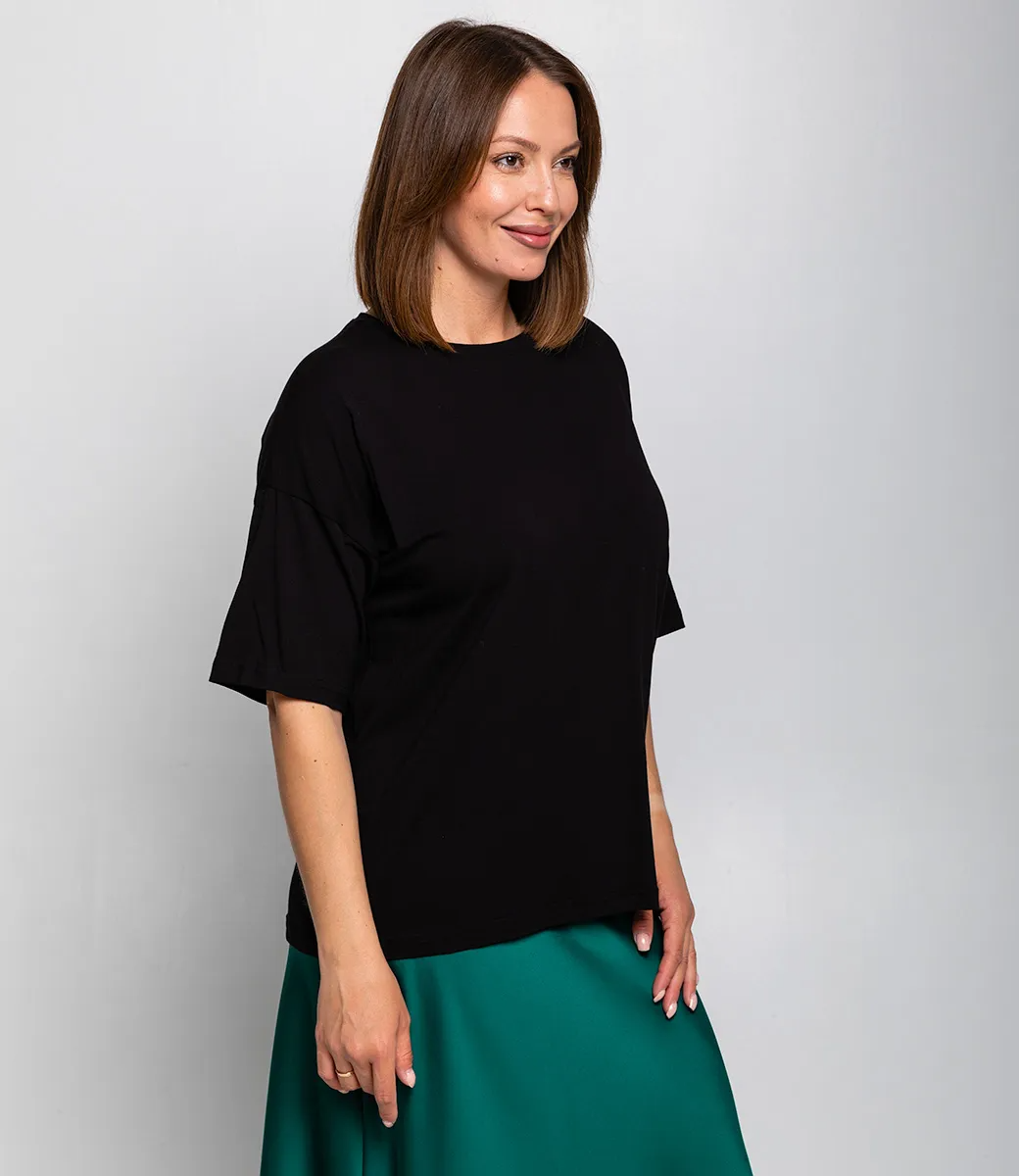 Универсальная модель oversize для повседневного стиля. Благодаря большому выбору оттенков футболку так же можно комбинировать с деловым стилем, надевая под пиджак или кардиган, делая образ ярче и интереснее.