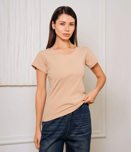 Эта футболка — прекрасный выбор для вашего магазина, предлагая стильный и универсальный дизайн, который станет отличным дополнением к гардеробу ваших клиентов. Свободный стиль, который обеспечивает комфорт и свободу движений. Широкие рукава делают футболку универсальной для различных нарядов. Простой и минималистичный дизайн без лишних деталей. Надежные швы, которые гарантируют долговечность изделия. Выполненная из 93% хлопка, 7% эластан, футболка обеспечивает отличное качество и приятные тактильные ощущения. Независимо от сезона, она станет любимым элементом в гардеробе ваших клиентов. На странице сайта доступна таблица размеров, что позволит вашим покупателям легко найти подходящий вариант. Установленная цена делает эту футболку доступной для широкой аудитории, что обеспечит вам высокий уровень продаж. Рост модели: 168, параметры: 89-63-90.