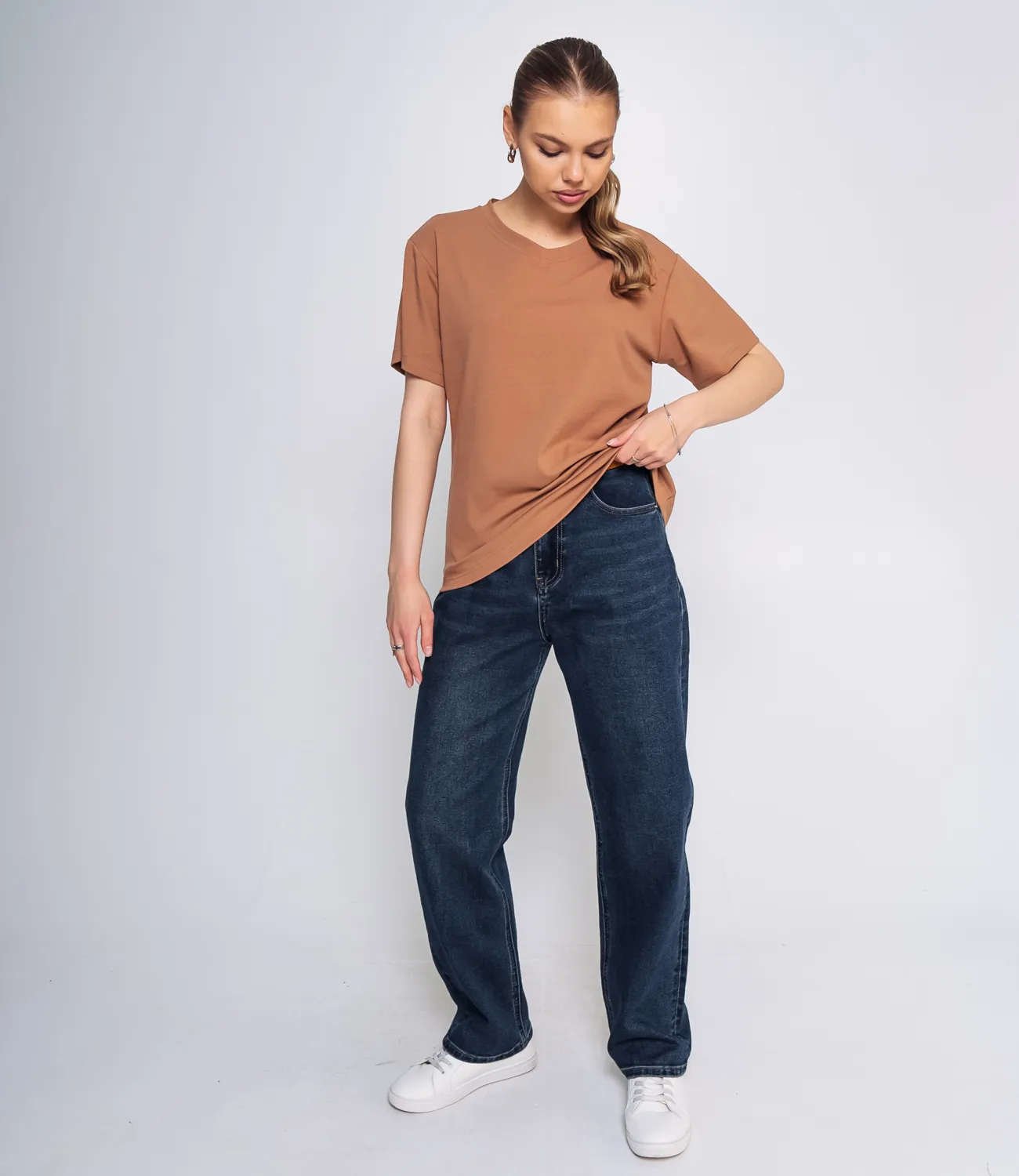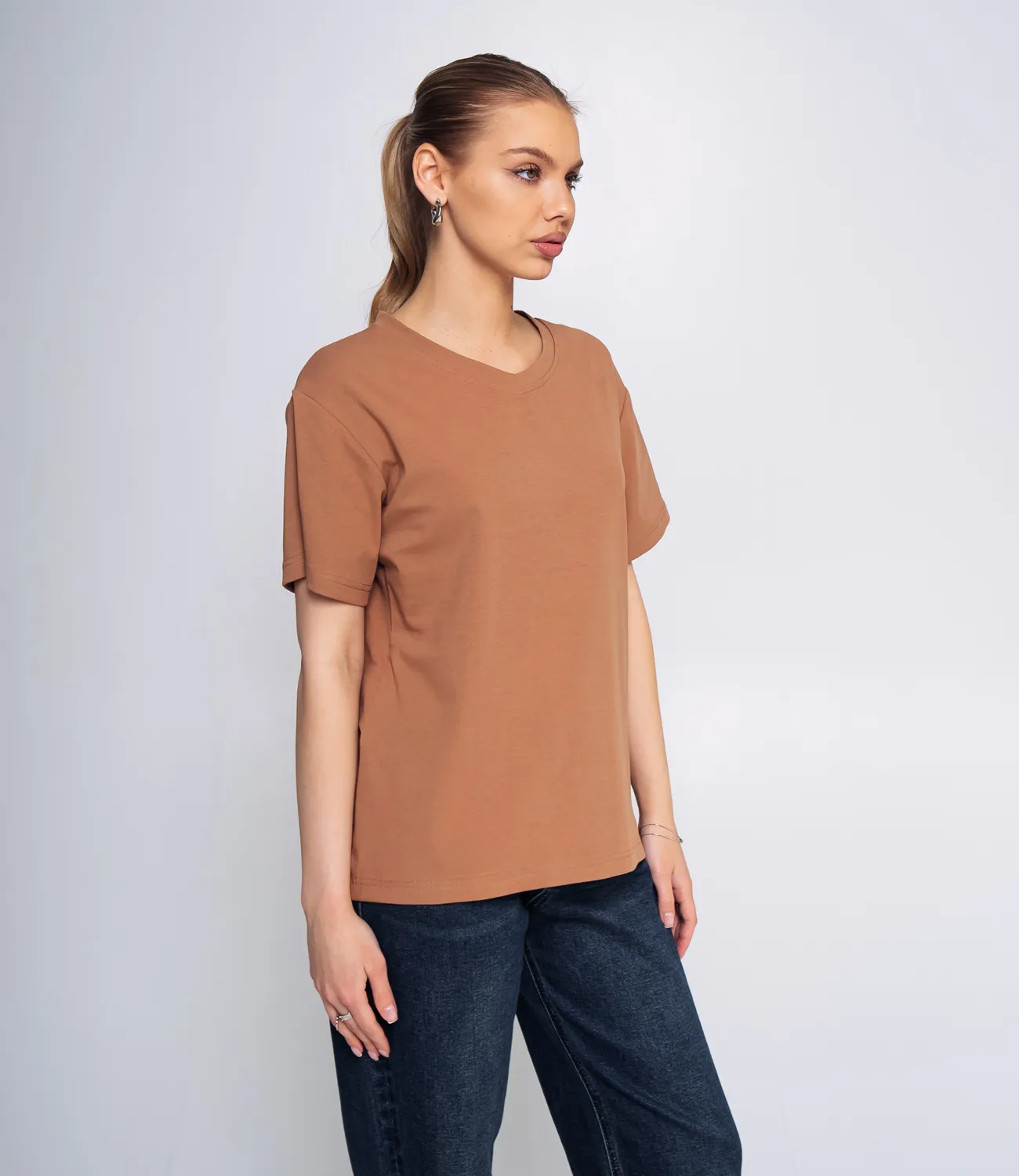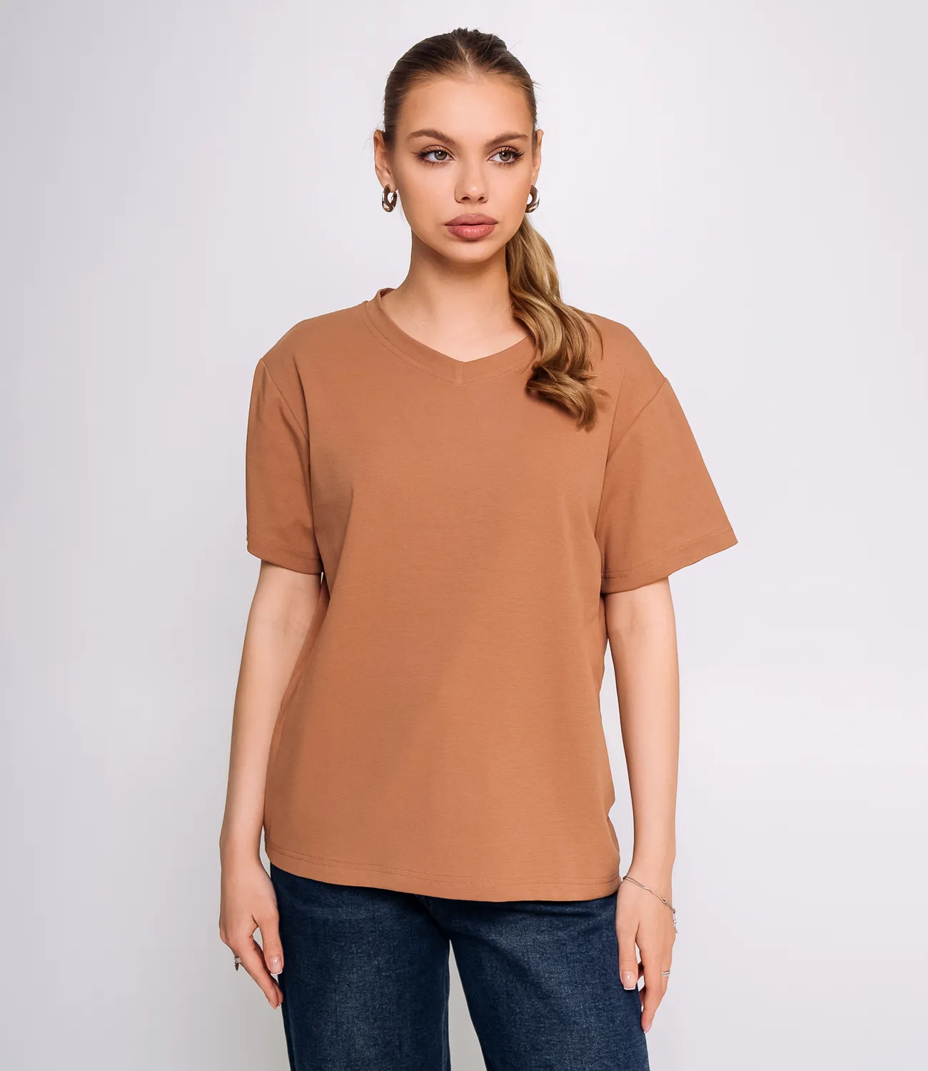 Футболка – это must-have элемент гардероба, который подчеркивает стиль и комфорт каждой женщины. Эта модель имеет свободный крой и короткие рукава, что обеспечивает комфортное прилегание и свободу движений. Вырез горловины оформлен в виде буквы "V", придавая изделию стильный и современный вид, который идеально вписывается в любые образцы. Изготовленная из 93% хлопка и 7% эластана, футболка обладает отличной воздухопроницаемостью, что делает её идеальной для повседневной носки, особенно в теплую погоду. Легкий и дышащий материал позволяет чувствовать себя комфортно в любой ситуации. Эта футболка легко комбинируется с различными элементами гардероба, такими как джинсы, шорты или леггинсы, позволяя вашим покупателям создавать стильные образы для встречи с друзьями или для прогулок по городу. Она станет универсальным предметом одежды, который можно носить как в расслабленный день, так и по особым случаям. Обратите внимание на её высокое качество: даже после множества стирок футболка сохранит свою форму и яркие цвета. Мы позаботились о том, чтобы ваши клиенты могли правильно выбрать размер, поэтому на нашем сайте представлена таблица с размерами, с помощью которой они смогут легко произвести необходимые замеры и выбрать идеальный вариант. Цена этой стильной футболки является доступной, что делает её отличным предложением для оптовых покупателей. Не упустите возможность обновить ассортимент вашего магазина и предложить женщинам образцы, которые помогут им выглядеть стильно и чувствовать себя уверенно! Рост 168, 89-63-90.