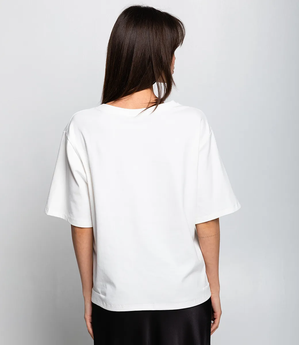 Футболка — это универсальная часть гардероба, которая подчеркивает индивидуальность и комфорт каждой женщины. Данная модель выполнена из высококачественного материала, состоящего из 95% полиэстера и 5% эластана, что обеспечивает отличную воздухопроницаемость и максимальное удобство при носке. Свободный крой делает футболку универсальной и позволяет легко сочетать ее с разными стилями и элементами одежды. Рукава средней длины создают гармоничный силуэт и придают изделия дополнительную функциональность, не ограничивая свободу движений. Особое внимание привлекает аккуратный вышитый элемент в виде вешалки, расположенный в центре груди. Он добавляет уникальный акцент минималистичному дизайну и подчеркивает утонченность модели. Круглый вырез горловины с плотной окантовкой сохраняет форму после множества стирок, гарантируя долгое сохранение привлекательного внешнего вида. Эта футболка пользуется спросом у покупательниц, которые ценят сочетание качества и доступной цены. Для изготовления использована ткань, отличающаяся безупречным качеством, что позволяет изделию сохранять свои свойства даже после многократных стирок. Обратите внимание на насыщенный цвет, который полностью соответствует фотографии на сайте и не теряет своей яркости со временем. Чтобы вы были уверены в правильном выборе размера, на странице сайта представлена удобная таблица с мерками. С ее помощью можно самостоятельно сделать замеры и удостовериться в точности выбора. Предложенная нами цена является доступной и привлекательной для оптовых покупателей, что делает эту модель выгодным дополнением к ассортименту вашего магазина. Подарите своим клиентам возможность быть стильными, комфортными и уверенными в любой ситуации с этой современной и практичной футболкой! Рост модели 164 см., 83-61-89.