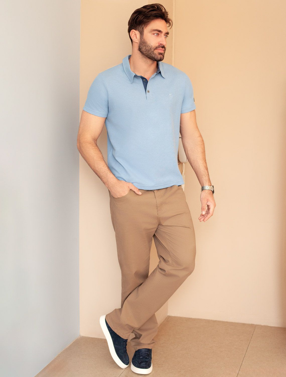 Футболка-поло выполнена из фактурного трикотажа. Модель с прямого кроя с небольшими разрезами по бокам дополнена вязаным воротником и вышитым логотипом бренда. Премиальный хлопковый трикотаж гарантирует комфорт и износостойкость. На рукаве брендированная металлическая нашивка. 80%Хлопок 20%ПЭ