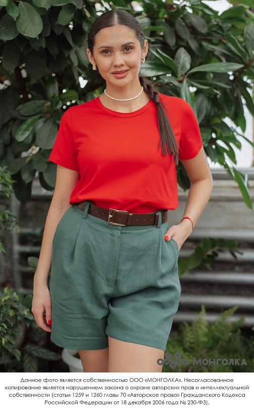 Трикотажная футболка элегантно смотрится в любом образе, а прилегающий силуэт визуально сужает талию и подчеркивает достоинства фигуры.