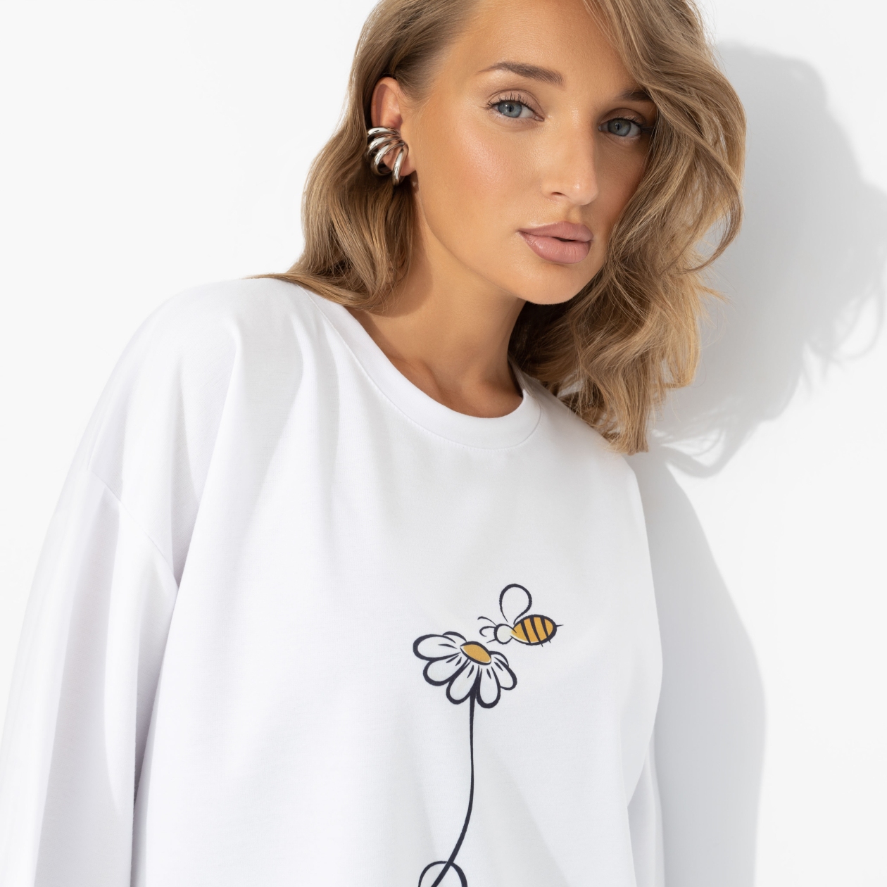 Кто бы мог подумать, что принт футболки ЧАРУТТИ повторит романтичную историю вашей жизни! В ней вы – прекрасный цветок, а ваш возлюбленный – пчела. Прилетел издалека, чтобы любоваться вами. Зафиксируйте историю вашего знакомства в футболке ЧАРУТТИ. Футболка свободного кроя удлиненная. Принт напечатан на ткани.