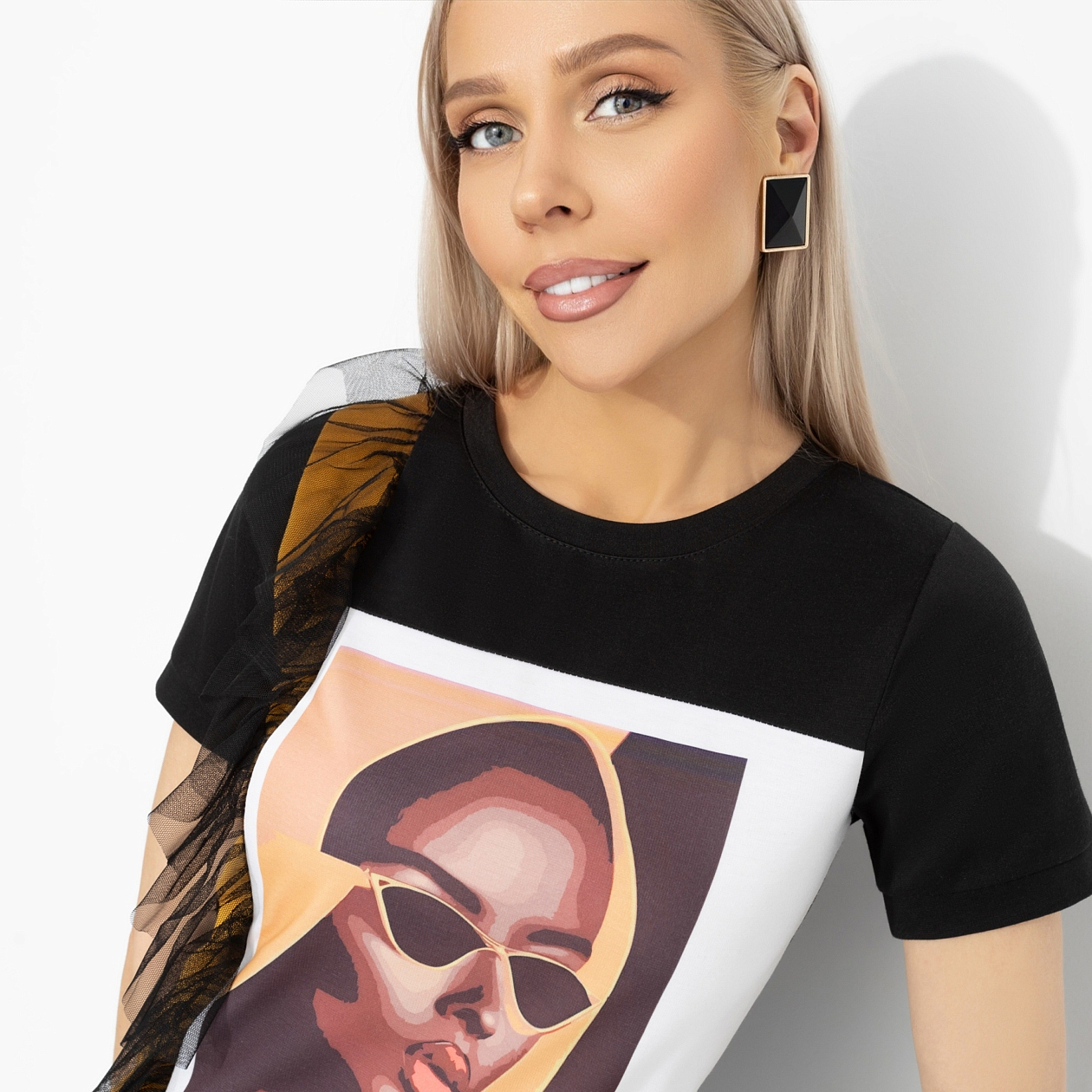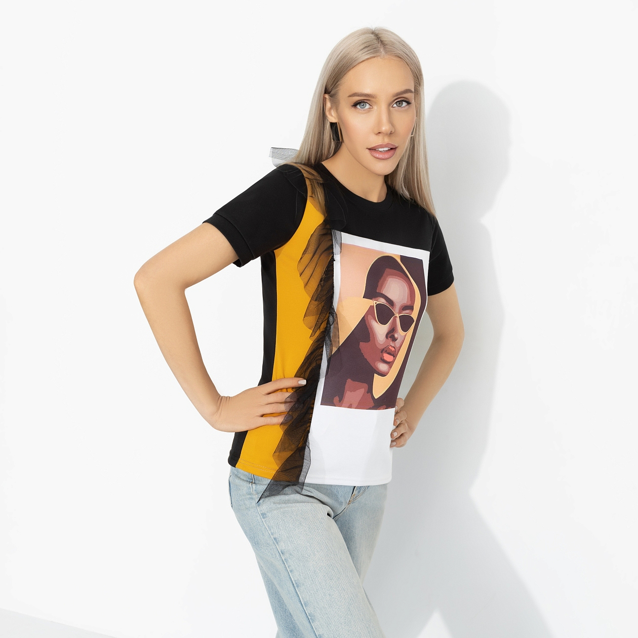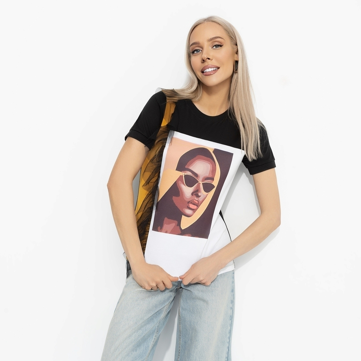 Портретные принты снова на пике – модные показы последних сезонов это подтверждают. Футболка ЧАРУТТИ работает по всем правилам тренда: выразительный арт-принт, лаконичный крой и образ с характером. Вещь, которая сразу становится центром внимания. Футболка выполнена из плотного трикотажа «милано» с добавлением вискозы и стрейча. Комфортная посадка, короткий рукав, акцентный рисунок. Советуем сочетать с денимом или минималистичными брюками, чтобы принт звучал особенно ярко.