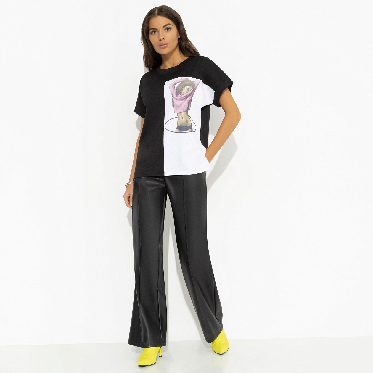 Коллекция женских футболок с принтом — это не просто одежда, это отражение вашего внутреннего мира. Футболка оверсайз с оригинальным дизайном позволяет выразить свой стиль и выделиться из толпы. Ведь ваш образ — это ваша визитная карточка, и он заслуживает быть запоминающимся. Покупая футболки оптом, вы получаете возможность создавать уникальные сочетания для любого настроения и случая, будь то повседневная прогулка или особенное событие. Ткань «Милано» обеспечивает комфорт в носке, а дизайн позволяет чувствовать себя уверенно и свободно.