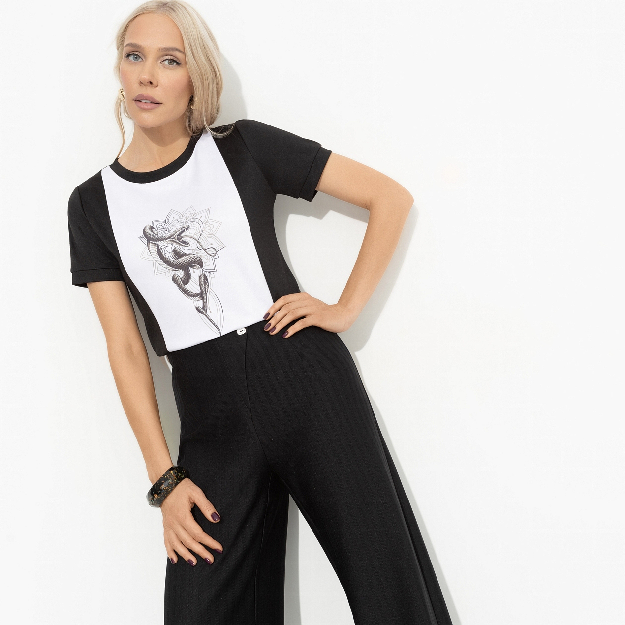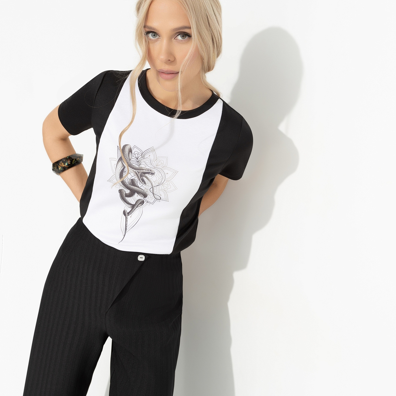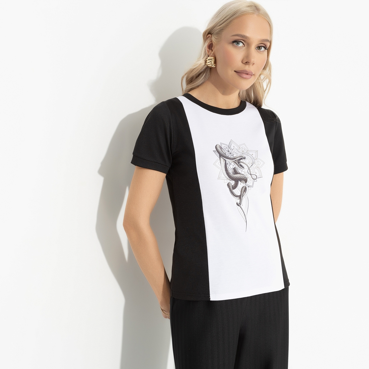 Футболка с принтом «Я так хочу (snake)» — это не просто одежда, это способ выразить себя. Оригинальный дизайн делает её идеальным выбором для смелых и уверенных в себе женщин. Если вы ищете футболки женские оптом для своего бутика или просто хотите обновить свой гардероб, эта футболка станет отличным решением. Она легко сочетается с различными элементами одежды, от джинсов до юбок, добавляя вашему образу индивидуальности и изюминки. Не упустите шанс ощутить на себе магию уникального стиля с CHARUTTI.