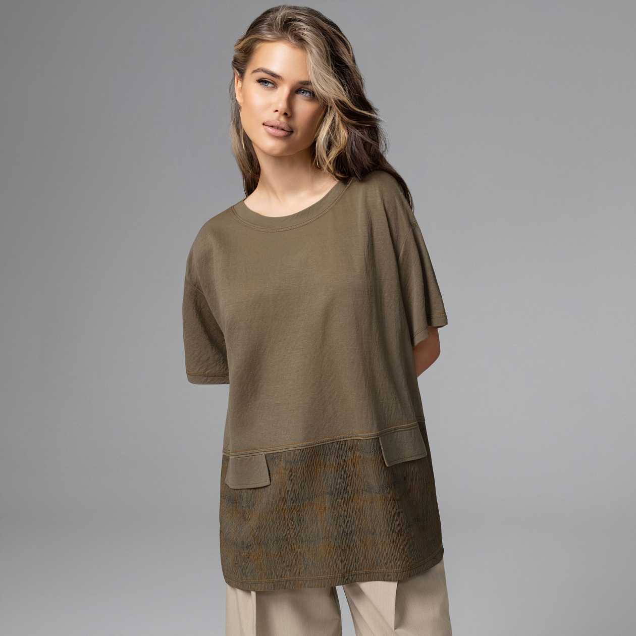 Мода 2026 всё чаще говорит языком спокойной силы: сложные фактуры, благородные природные оттенки и интеллектуальная простота силуэта. Сдержанная эстетика, в которой уверенность читается без лишних акцентов – в характере твоей новой футболки от ЧАРУТТИ. Свободный силуэт мягко ложится по фигуре, а архитектурная линия низа делает вещь выразительной частью премиальной капсулы.