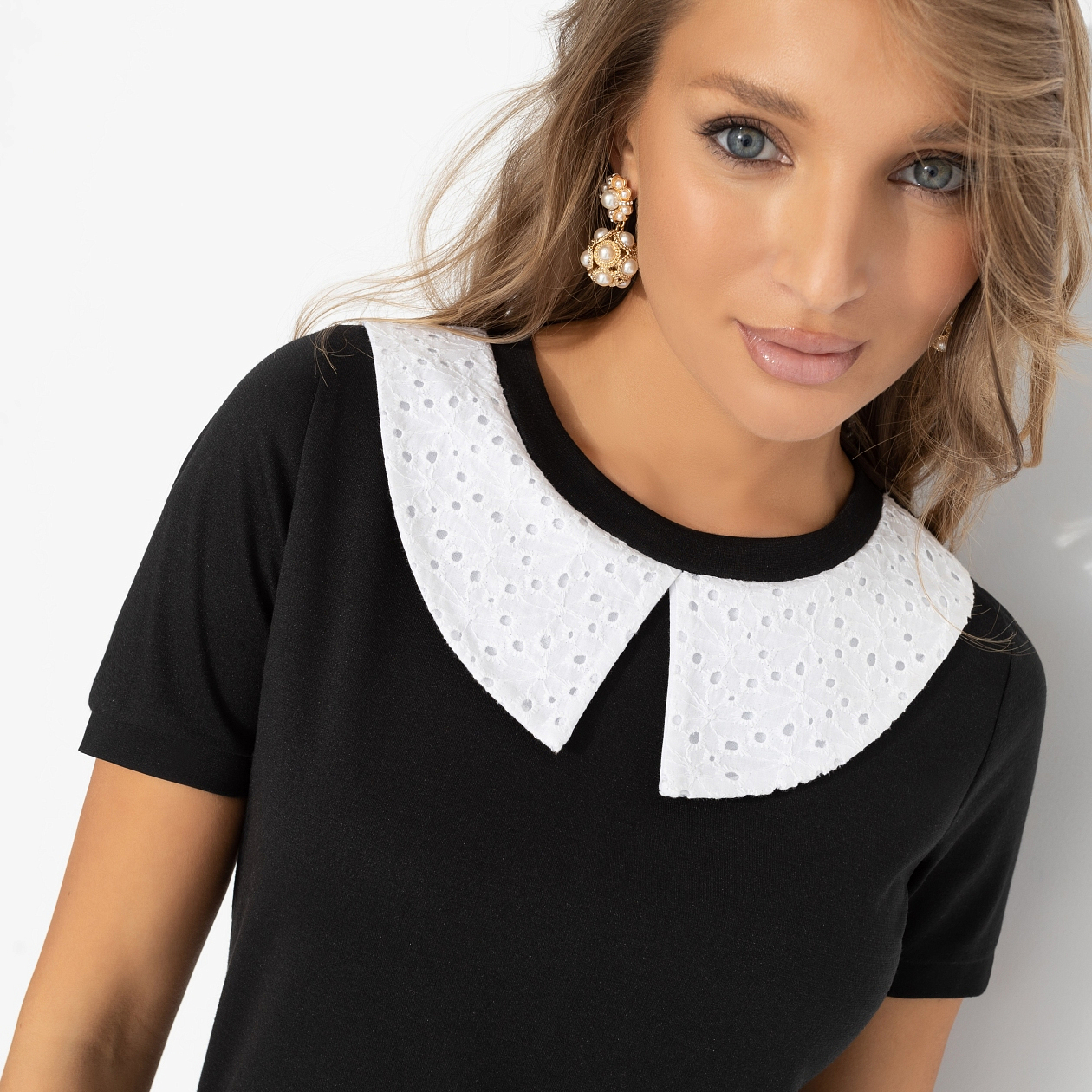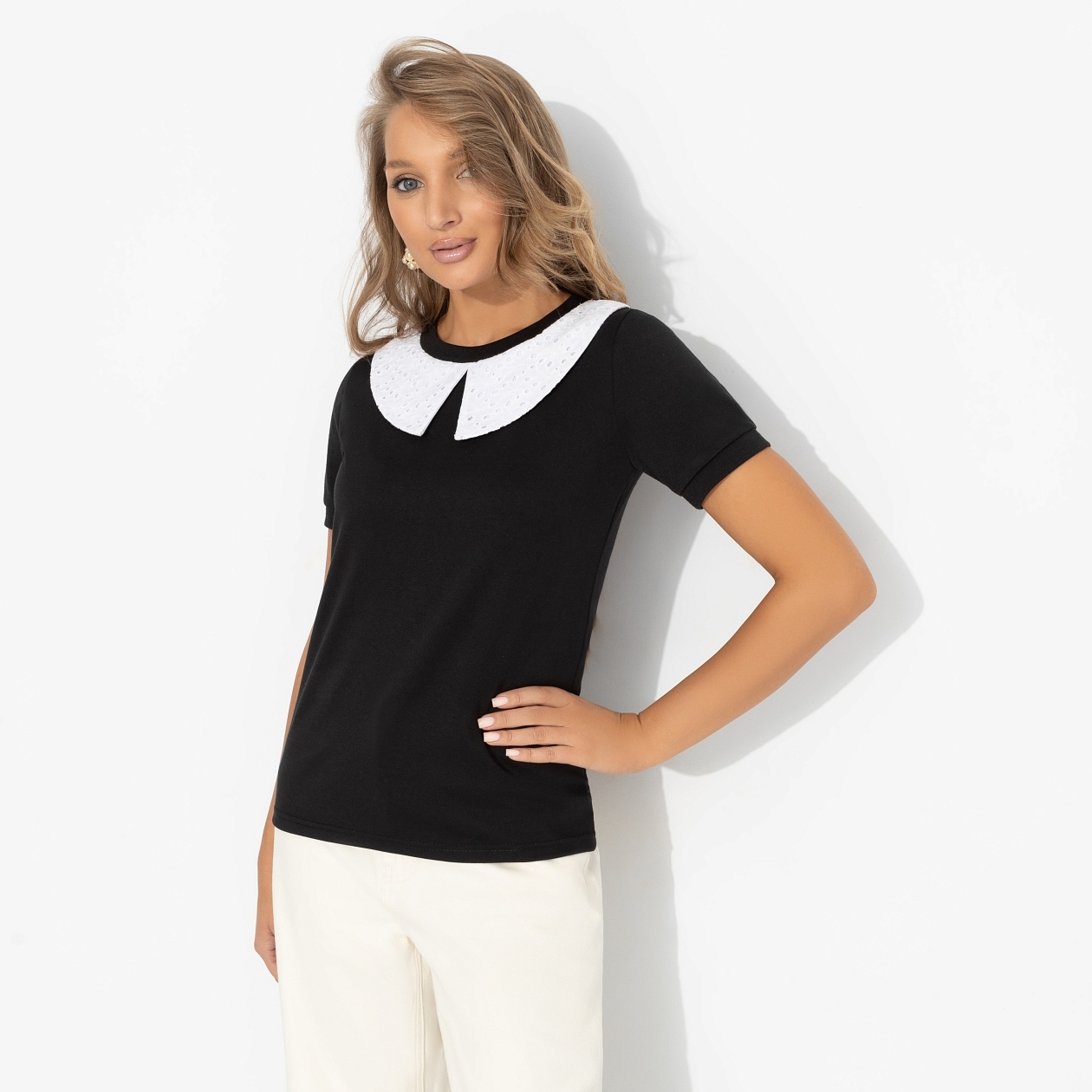 Классика вне времени: контрастный воротник моментально дарит образу вайб Уэнздей Аддамс. Только чуточку поспокойнее. Футболка впишется в любой образ и настроение. Продуманный баланс между строгими линиями и мягкой посадкой. Дизайнеры ЧАРУТТИ снова создали вещь, о которой будут говорить все. Футболка прилегающего силуэта из эластичной ткани. Воротничок не съемный.