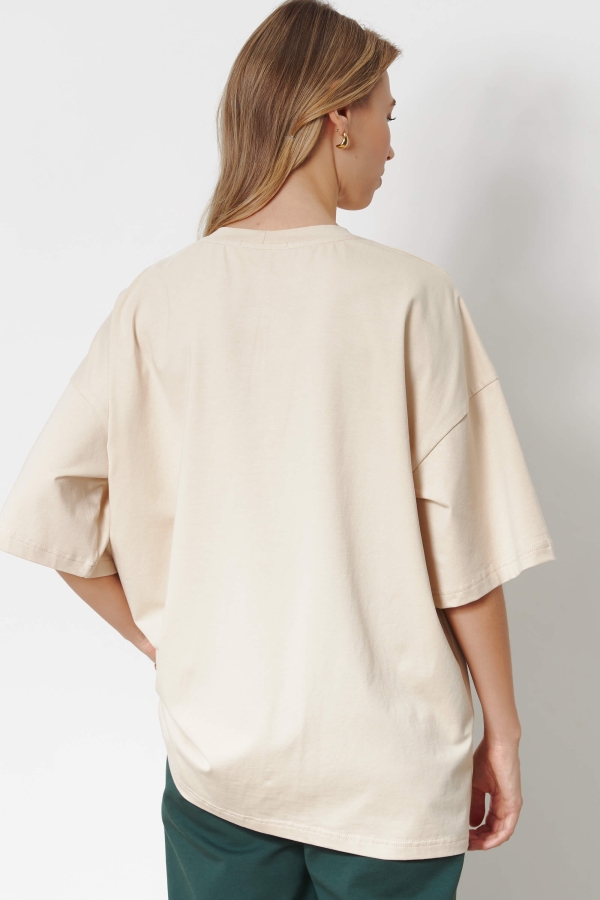 Стильный джемпер из трикотажного полотна с авторским принтом. Оверсайз модель. Рукав спущенный. Горловина обработана бейкой.