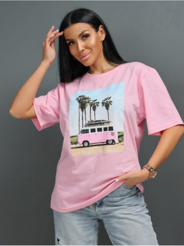 Праздничная женская футболка оверсайз с  принтом.  Выполнена из натурального хлопка, качественный материал при бережном уходе не вытягивается и не дает усадку. Принт нанесён современным способом печати - шелкография, он не трескается и не осыпается со временем, коже под ним комфортно. Кулирка/Хлопок 100%