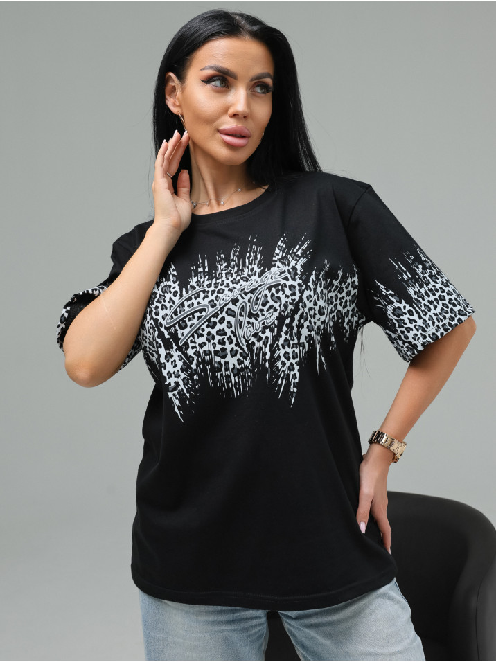 Футболка "Саваж" Черный Серый женская