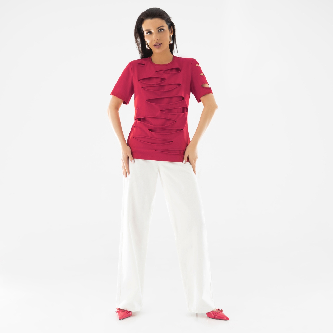 Красный цвет этой футболки — это не просто цвет, это заявление. Он притягивает взгляды и вызывает восторженные комментарии. Выразите свою страсть к жизни и энергию с этим ярким акцентом, который подчеркнет вашу уникальность и стиль.