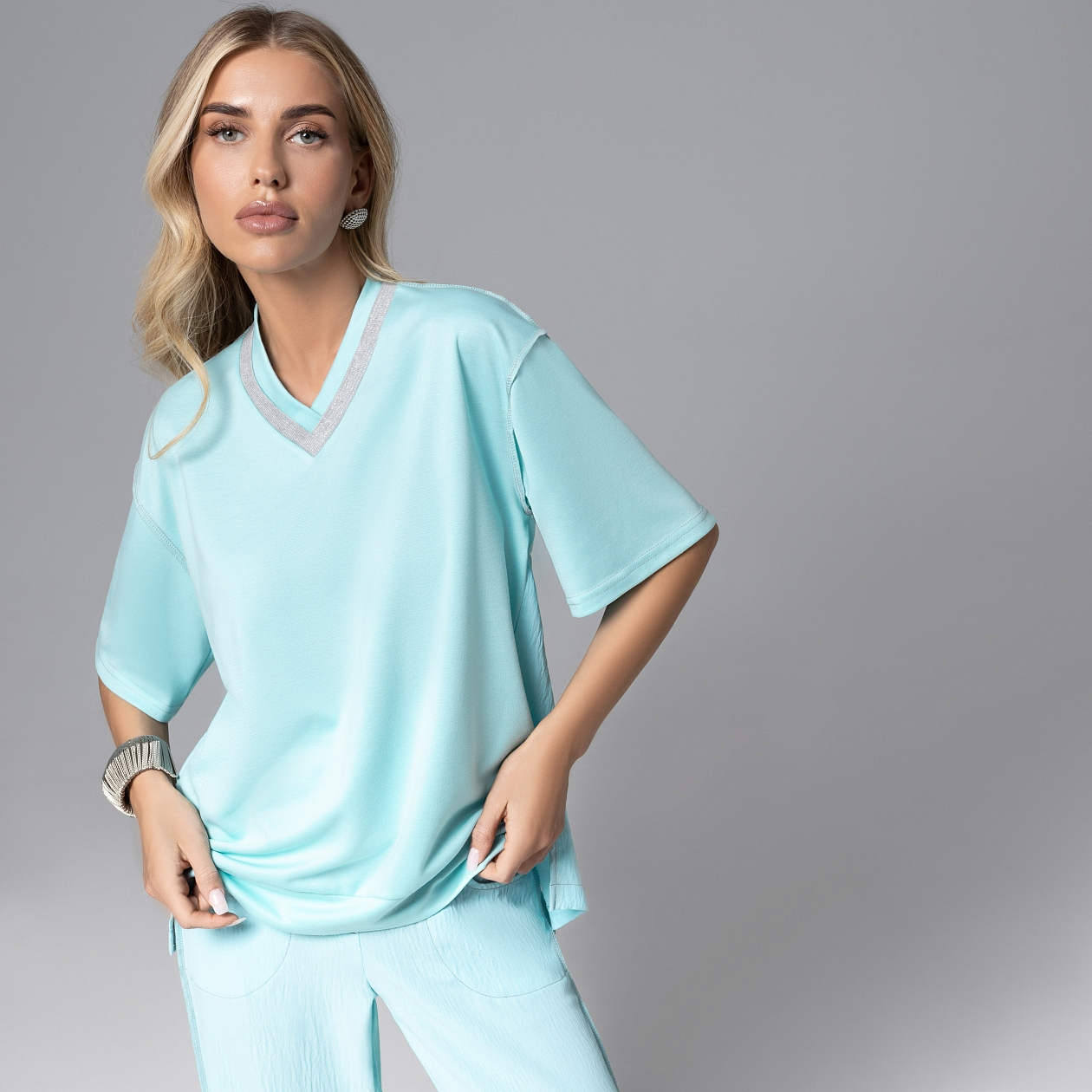 Адаптируйте моду под себя. Вы это заслуживаете. Футболка первоклассного кроя не в классическом цвете, а в цвете вашего настроения. Даже убежденные модные консерваторы не смогут не обратить внимание. Футболка свободного кроя. Акцентные наружние швы в безупречном исполнении. Спинка комбинированная с материалом в тон изделия. V-образный вырез ворота дополнен цветовым акцентом из трикотажа. Ярлык бренда с наружней части изделия по спинке.