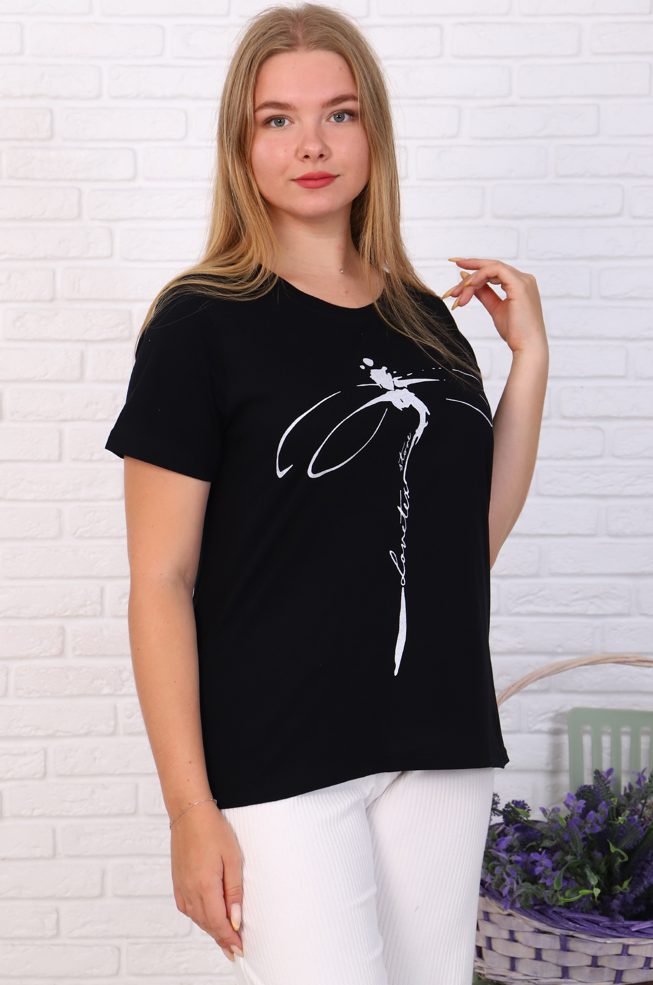 Женская хлопковая футболка классического прямого кроя. На полочке изящный и нежный печатный принт. Ткань кулирка.