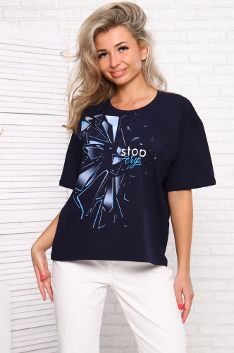 Футболка с "летним" принтом добавит красок в серые будни! Модель прямого кроя, горловина - отделка рибаной. Ткань кулирка с лайкрой.
