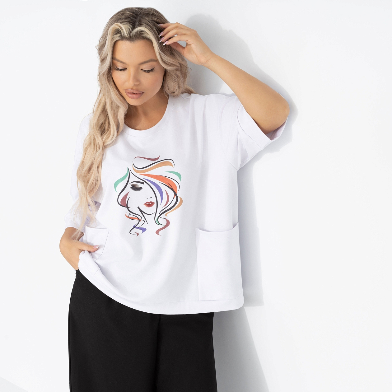 Футболка ЧАРУТТИ, которая носит истории в карманах. Смешные и серьезные, короткие и длинные, простые и глубокие. Белая снаружи, с многоцветными вселенными внутри. У вас есть, что рассказать по любому поводу. За это вас и любят. Футболка свободного кроя. Изделие слегка удлиненное. Посадка на любой тип фигуры. Линия плеча спущена. Два накладных кармана по передней части изделия.