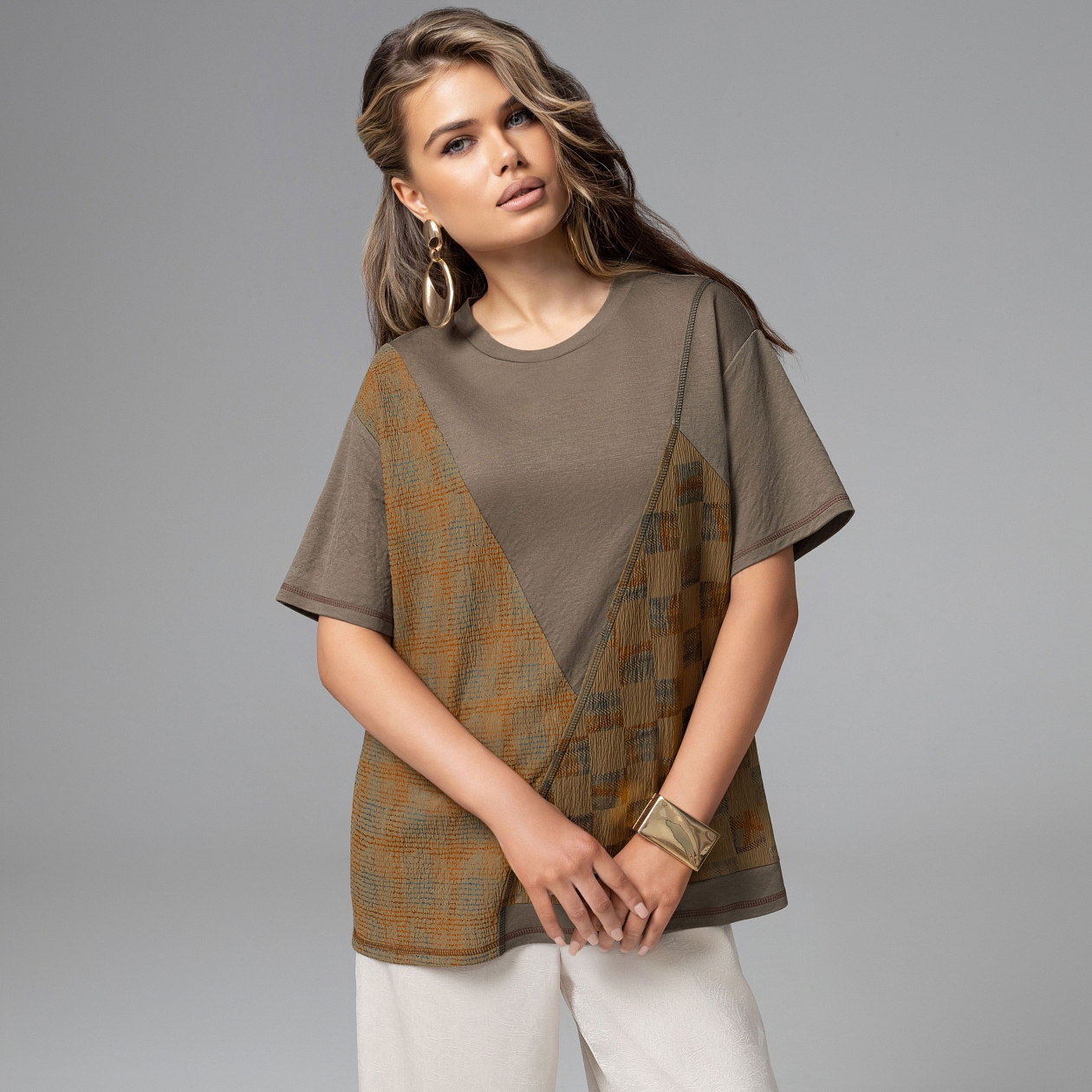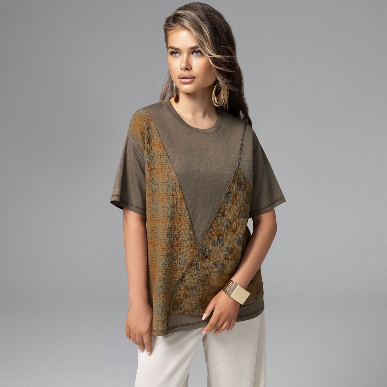 Твой стиль – это игра на грани. Сделать шаг в сторону дерзости, но сохранить идеальный баланс. Сложная геометрия, спокойная уверенность и ощущение, что ты всегда контролируете линию риска – вот что принесет в твой гардероб новая футболка от ЧАРУТТИ. Диагональная композиция визуально вытягивает силуэт и добавляет образу архитектурную чёткость. Даже на грани ты чувствуешь себя уверенно.
