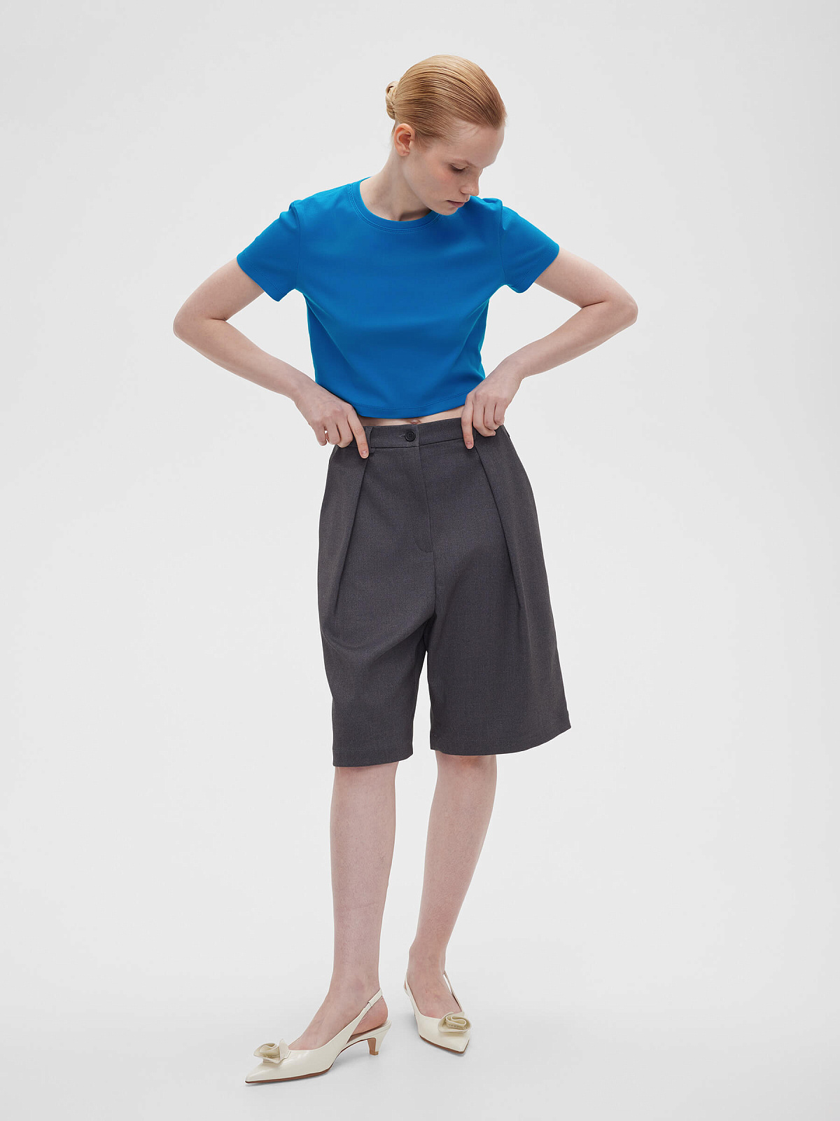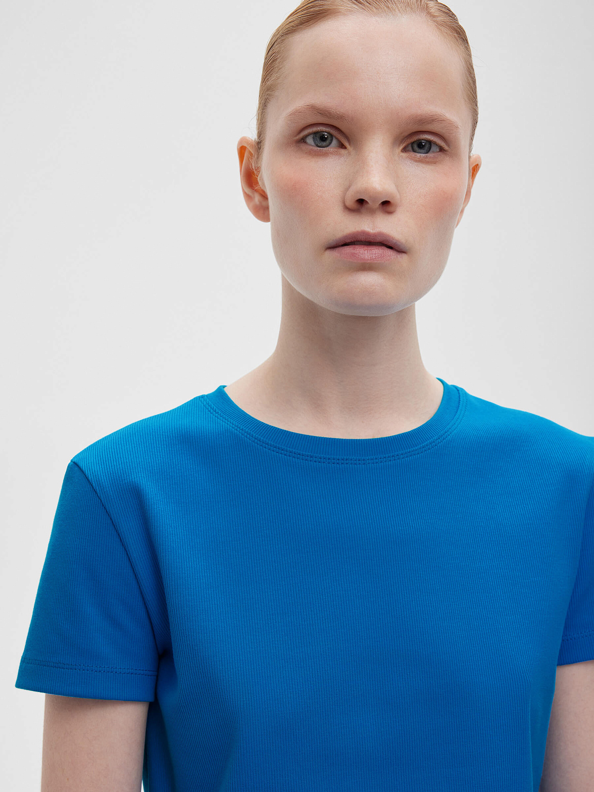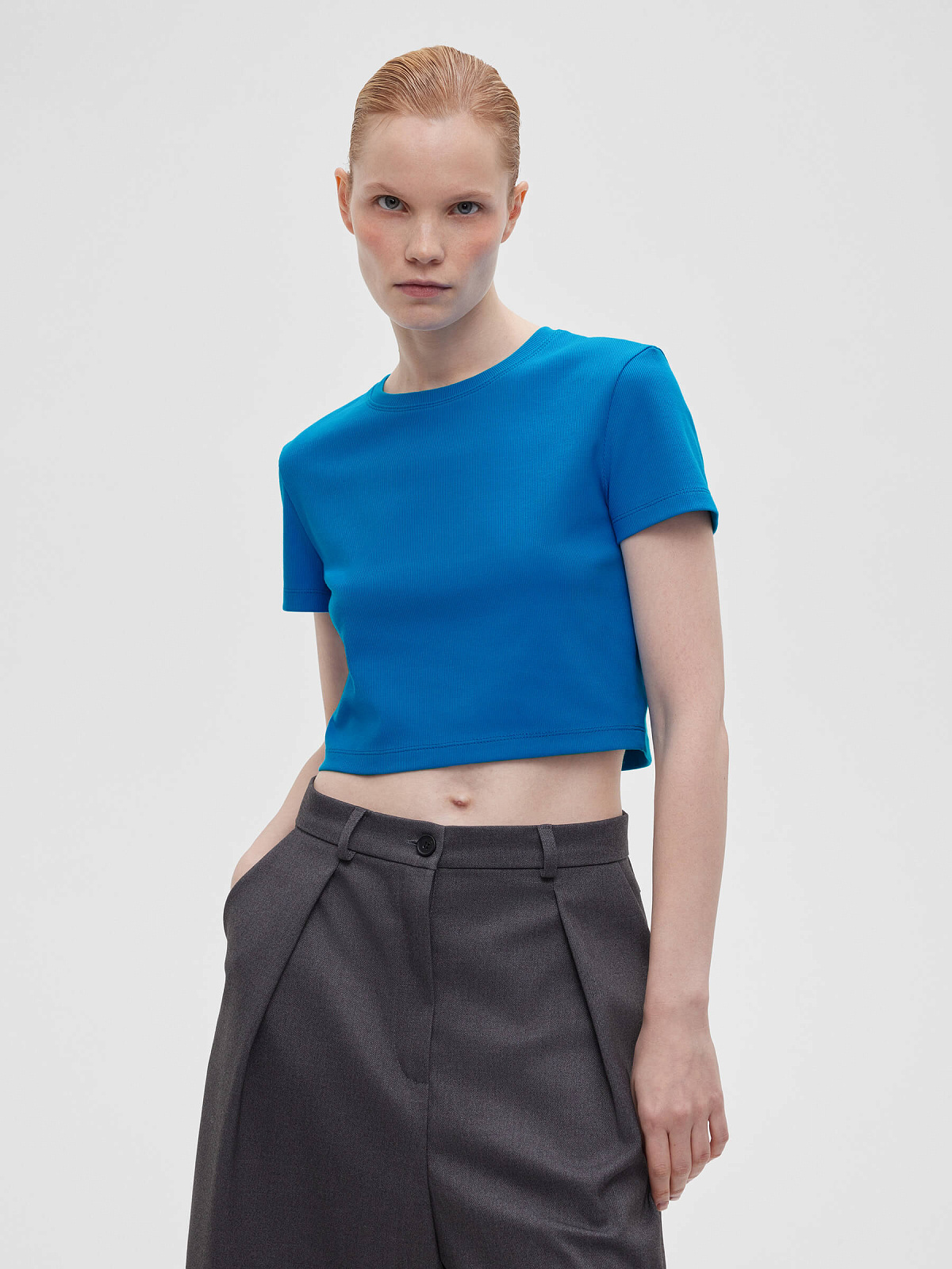 Футболка укороченная прилегающего кроя из трикотажа в рубчик