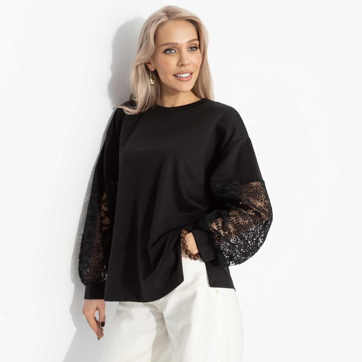 Мир сразу стал другим. Взгляд стал острее, шаг ‒ увереннее. Любовь? Она почувствовала её раньше, чем успела обнаружить. Такая футболка не ждёт чудес. Она их вызывает. Футболка свободного кроя, с прозрачным гипюром на рукавах. Для тех, кто в поиске...
