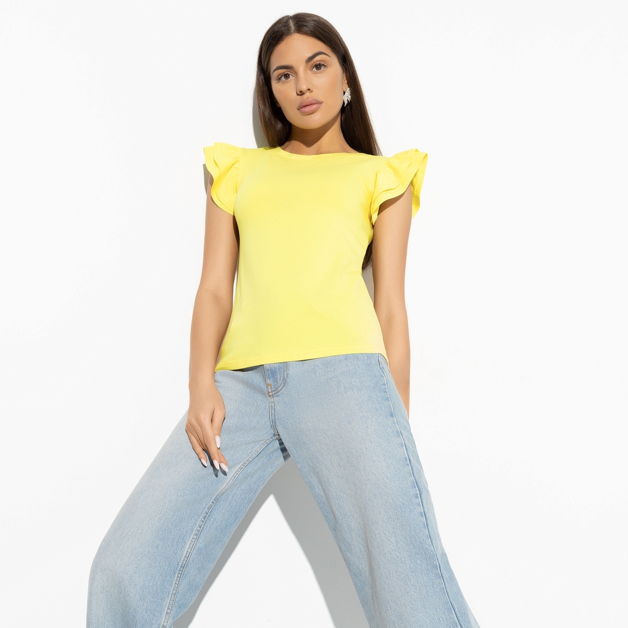 Завоевать сердца многих? Легко! В футболке пастельно-желтого цвета. Воланы на плечах, классическая посадка делают футболку оружием массового ми-ми-мишного поражения.