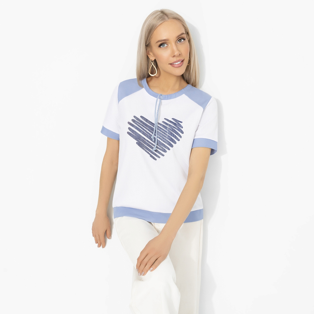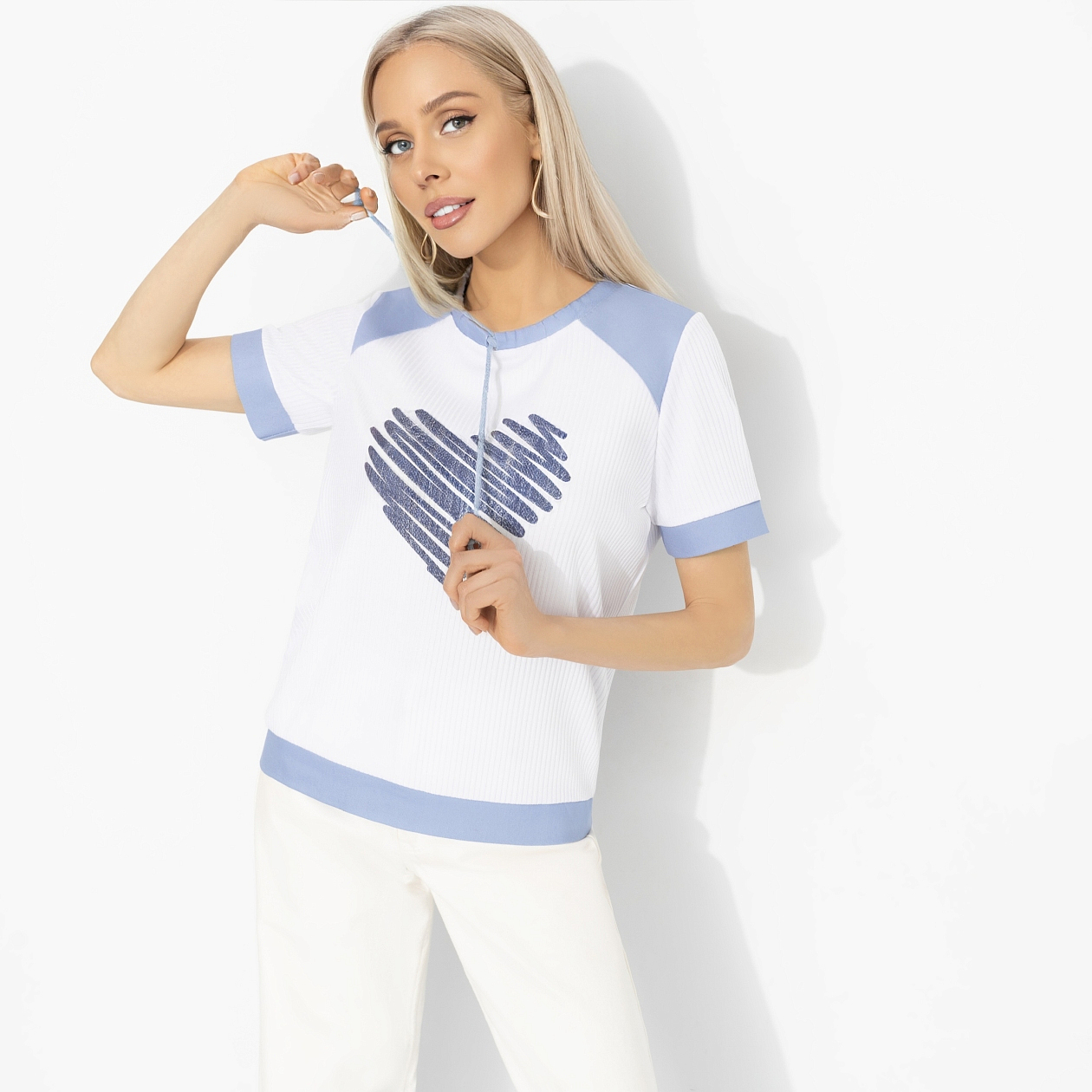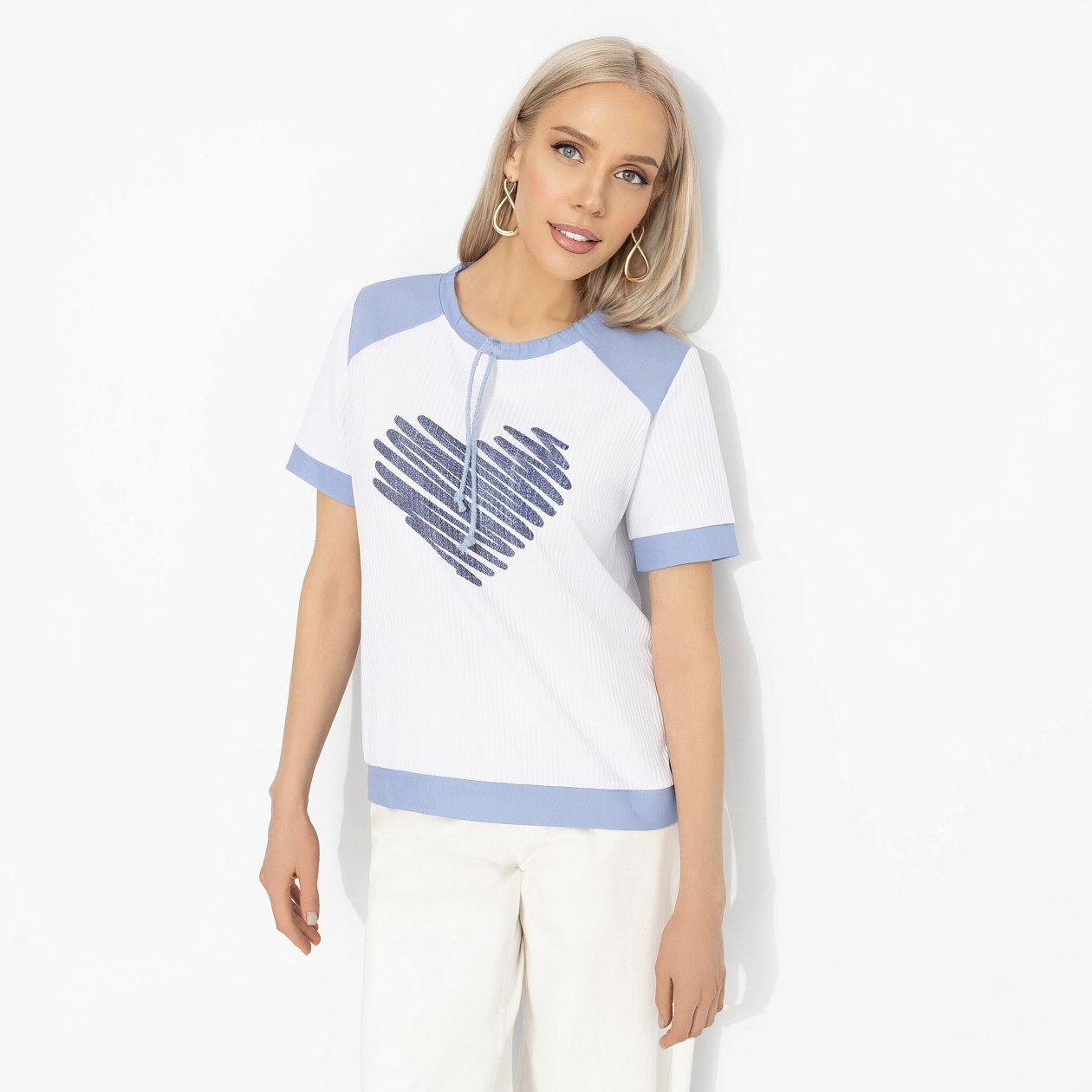Есть вещи, которые говорят за вас. Футболка с сердечком – как признание в любви миру. И удивительно, но чувство оказывается взаимным: улыбки прохожих, тёплые взгляды и комплименты появляются сами собой. Футболка свободного кроя из трикотажа «лапша» с добавлением вискозы и спандекса. Контрастная отделка по горловине и рукавам, акцентный рисунок. Ткань мягкая, эластичная, комфортно садится по фигуре и приятна к телу. Ты точно в числе избранных!
