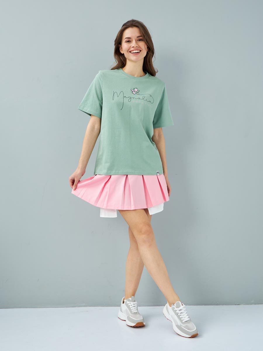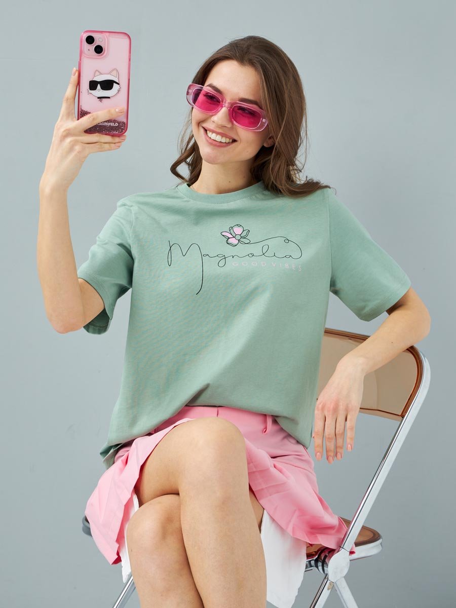 Женская футболка F5, Comfort fit (свободный силуэт), круглый вырез горловины, короткий рукав. Выполнена из классического трикотажного полотна. 100%Хлопок