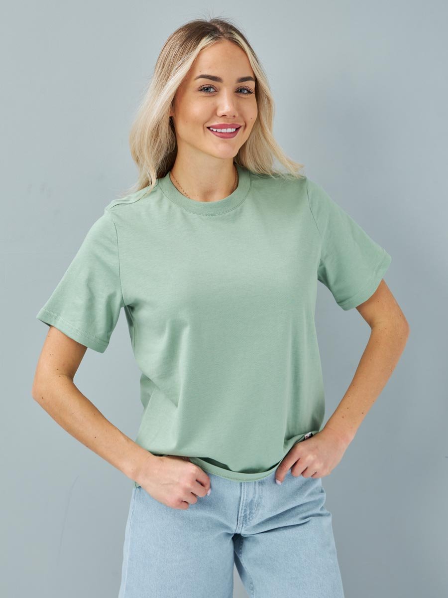 Женская футболка F5, Comfort fit (свободный силуэт), круглый вырез горловины, короткий рукав. Выполнена из классического трикотажного полотна. 100%Хлопок