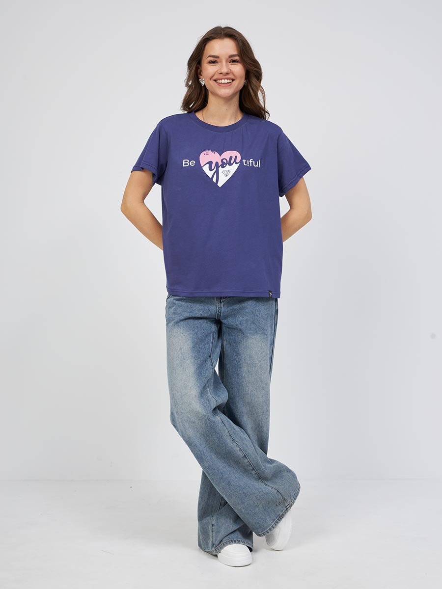 Женская футболка F5, Oversize fit (свободный силуэт), круглый вырез горловины, короткий цельнокроеный рукав. Выполнена из классического трикотажного полотна. 100%Хлопок