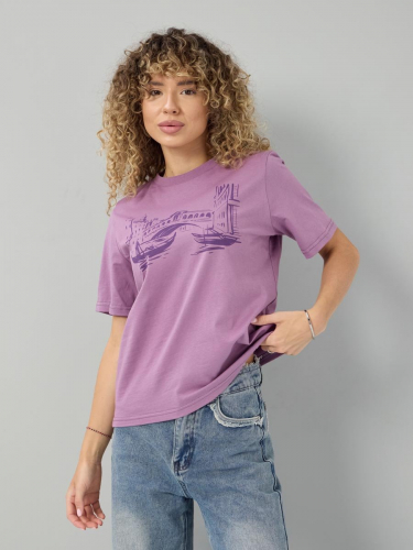 Женская футболка F5, Comfort fit (свободный силуэт), круглый вырез горловины, короткий рукав. Выполнена из классического трикотажного полотна. 100%Хлопок