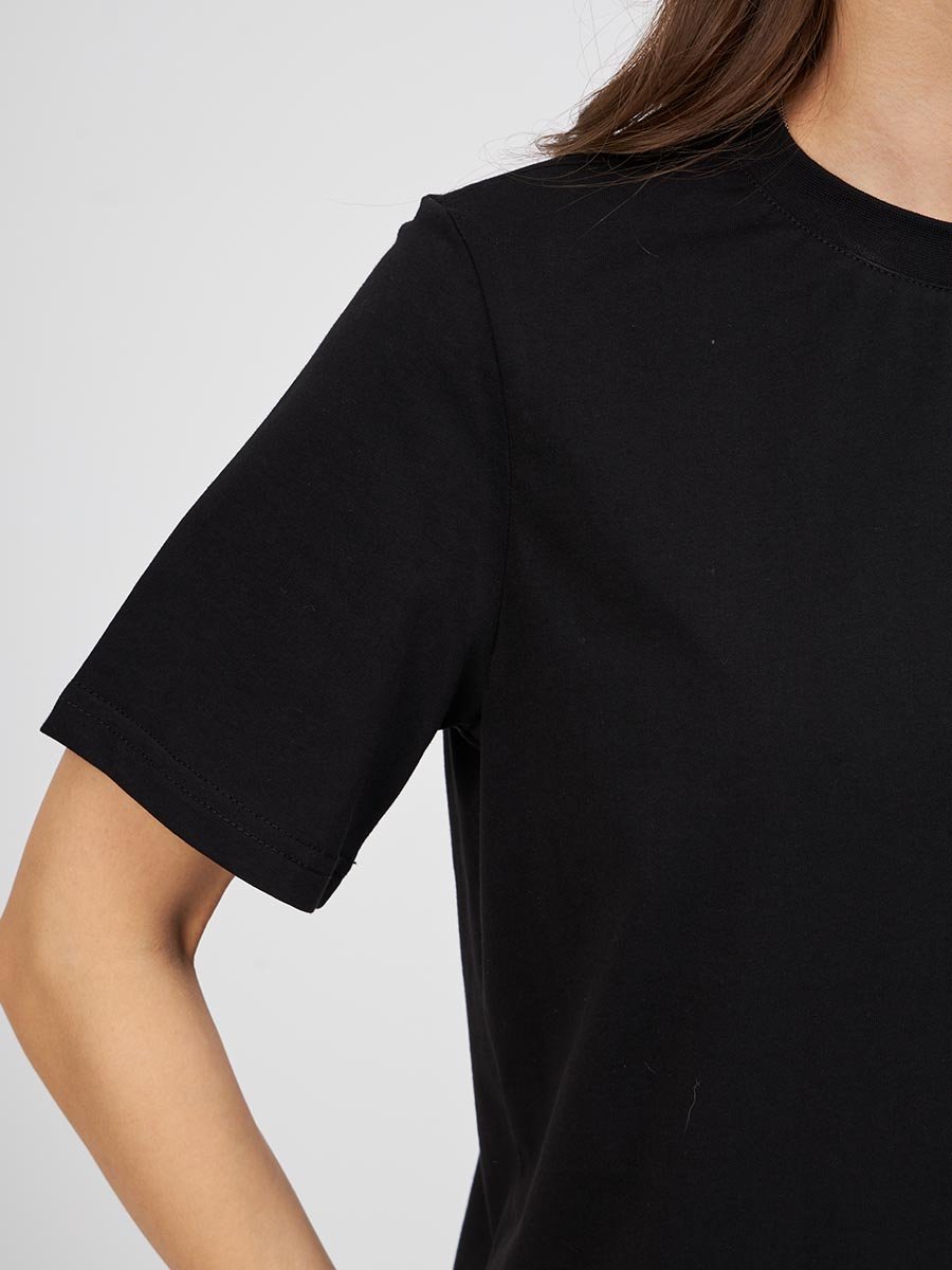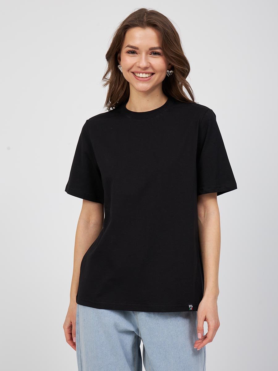 Женская футболка F5, Comfort fit (свободный силуэт), круглый вырез горловины, короткий рукав. Выполнена из классического трикотажного полотна.