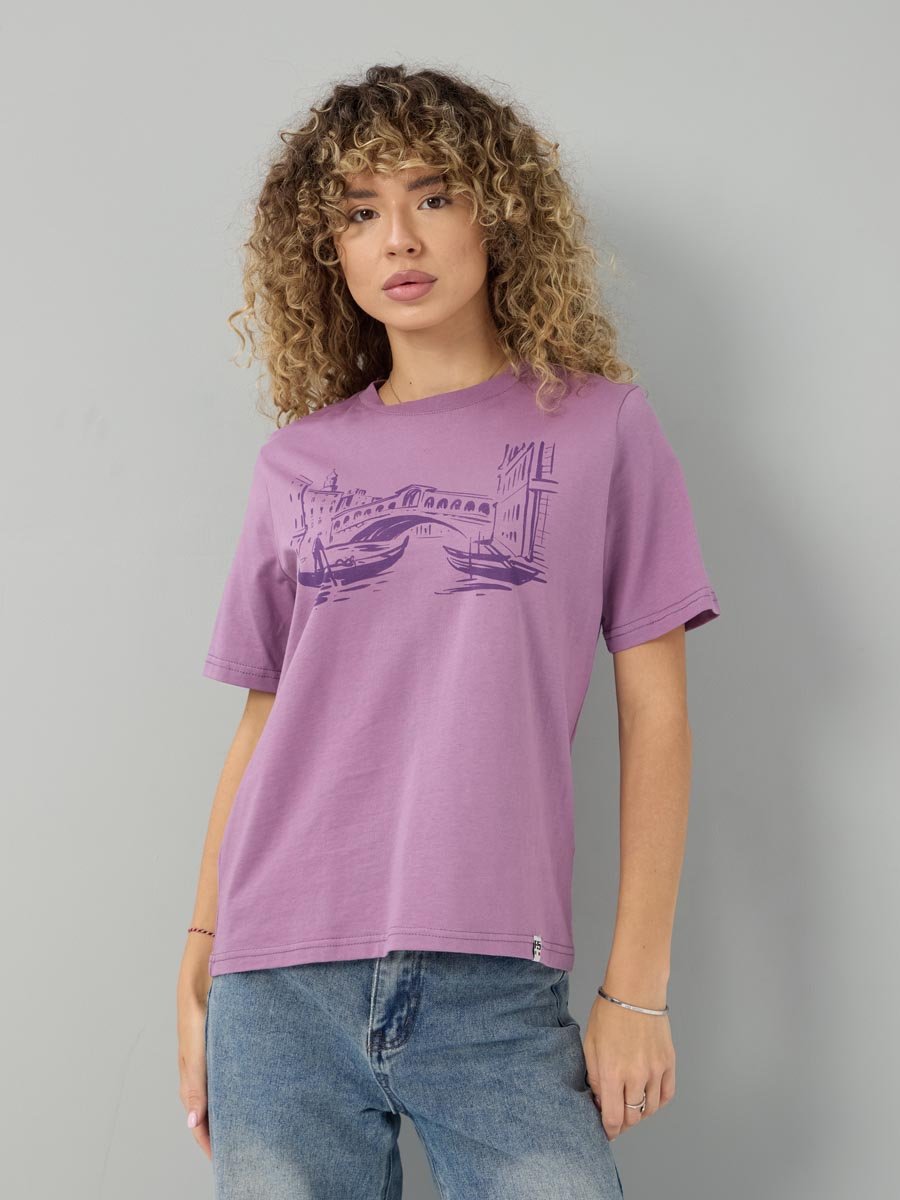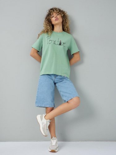 Женская футболка F5, Comfort fit (свободный силуэт), круглый вырез горловины, короткий рукав. Выполнена из классического трикотажного полотна.
