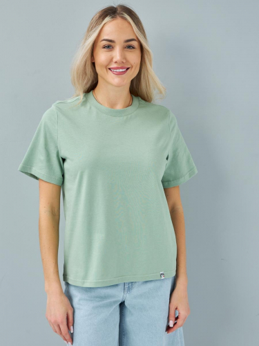 Женская футболка F5, Oversize fit (свободный силуэт), круглый вырез горловины, короткий цельнокроеный рукав. Выполнена из классического трикотажного полотна.